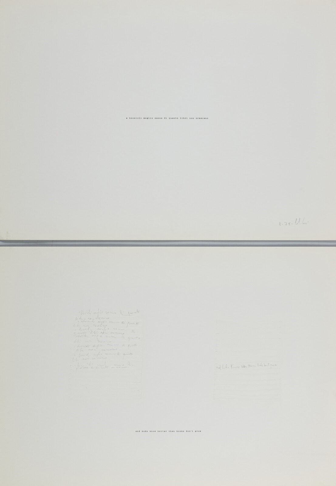 CALZOLARI PIER PAOLO (n. 1943) Cartella composta da n.7 fogli. 1975. Serigrafia e collage. Cm 70,00 x 50,00. 8/75. Ogni grafica (composta da due fogli) presenta tiratura e firma a matita in basso a destra. Edizioni totali: 75 esemplari. Edizioni Arte Studio Macerata. Presente confezione originale.