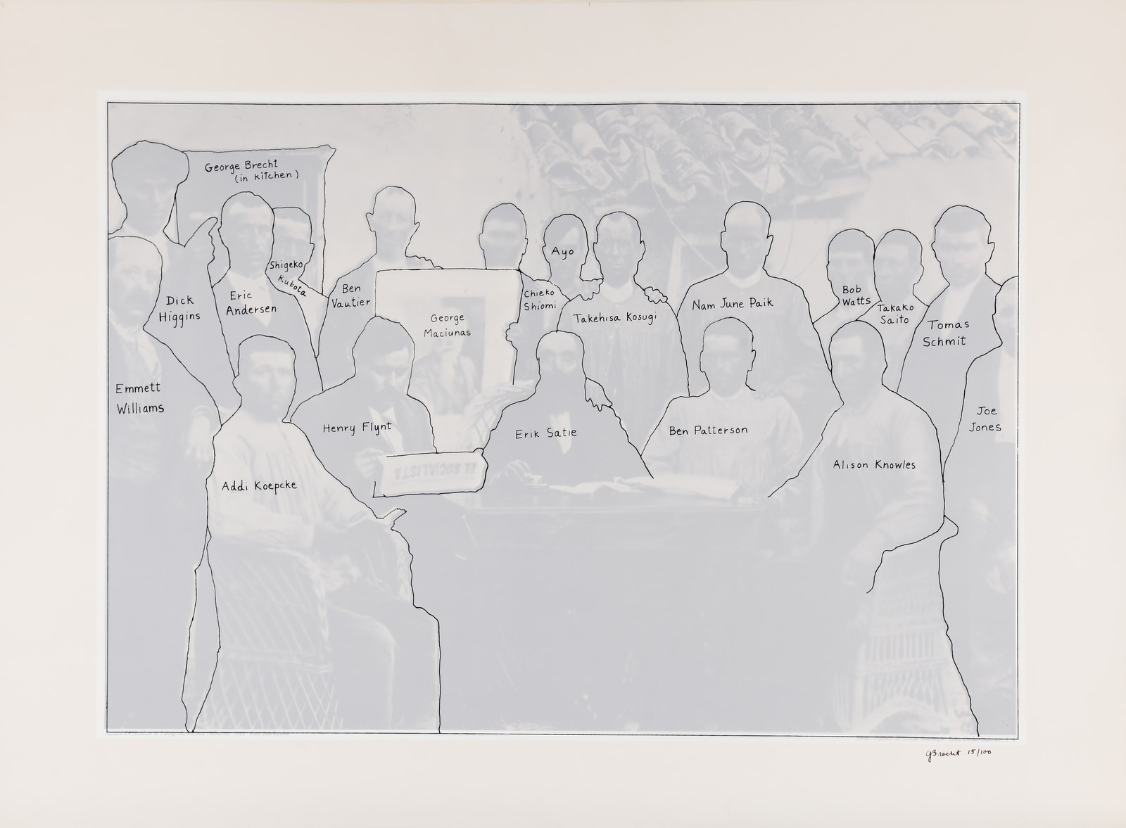 ARTISTI VARI Portfluxus. Tecnica mista e assemblaggio. Cm 70,00 x 100,00. 15/100. Cartella composta da n.14 fogli firmati e numerati a matita (E. Andersen, "Disconception IX;Ay-O, "Put finger in hole";G. Brecht, "Artisti Fluxus-Portfluxus", P. Corner, "Piano work",R. Filliou, "The poet's pour privilegde", G. Hendricks, "Changing sky",D. Higgins, "Big man sees little star", J. Jones, "No smoking", A. Knowles, "C'est la fin des haricots", N. J. Paik, "Life is tape", T. Schmit, "Senza titolo", B. Vautier, "Fluxus music", B. Watts, "Luna post", E. Williams, "Senza titolo"). 1980-1981. Pubblicata da Edizioni FactotumArt. Editore: Sarenco & D. Strazzer, Verona. Difetti.