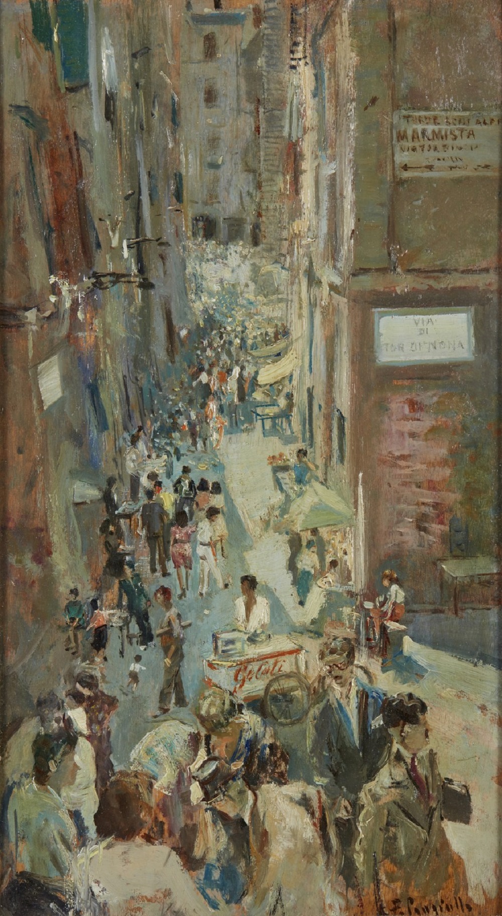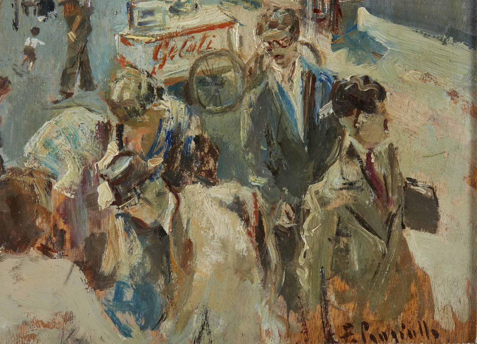 CANGIULLO FRANCESCO (1884 - 1977) Senza titolo. Olio su tavoletta. Cm 17,00 x 30,00. Firma in basso a destra. Cornice presente