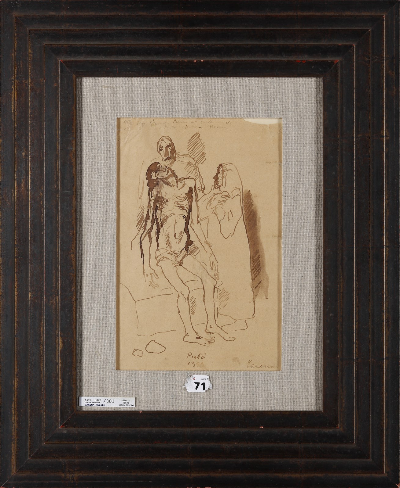 CARENA FELICE (1879 - 1966) Pietà. 1959. Tecnica mista su carta. Cm 21,00 x 32,00. Titolo, firma e anno in basso. Certificato di provenienza Galleria Sant'Agostino. Difetti. Cornice presente