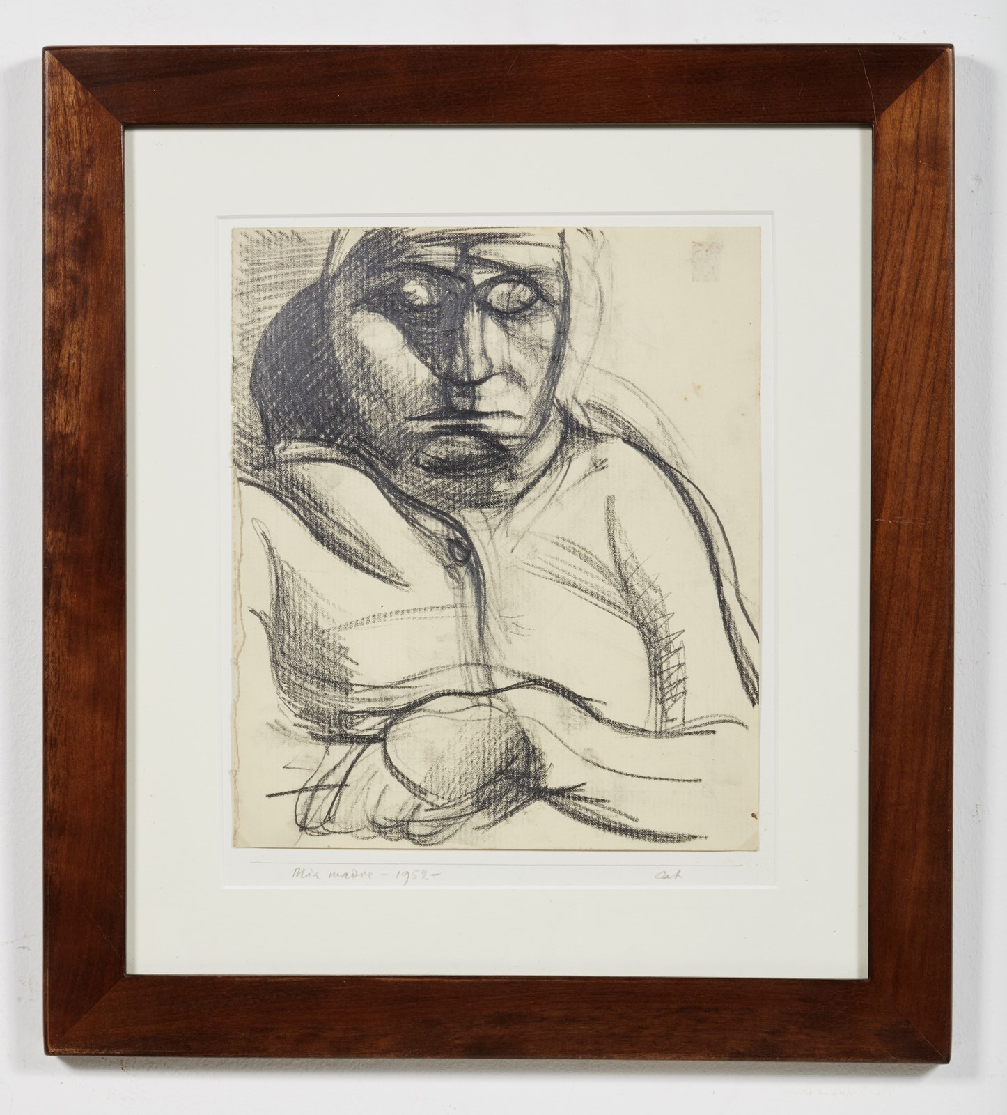 FRANCESE FRANCO (1920 - 1996) Mia madre. 1952. Carboncino su carta. Cm 24,50 x 29,00. Titolo e anno in basso a sinistra. Cornice presente