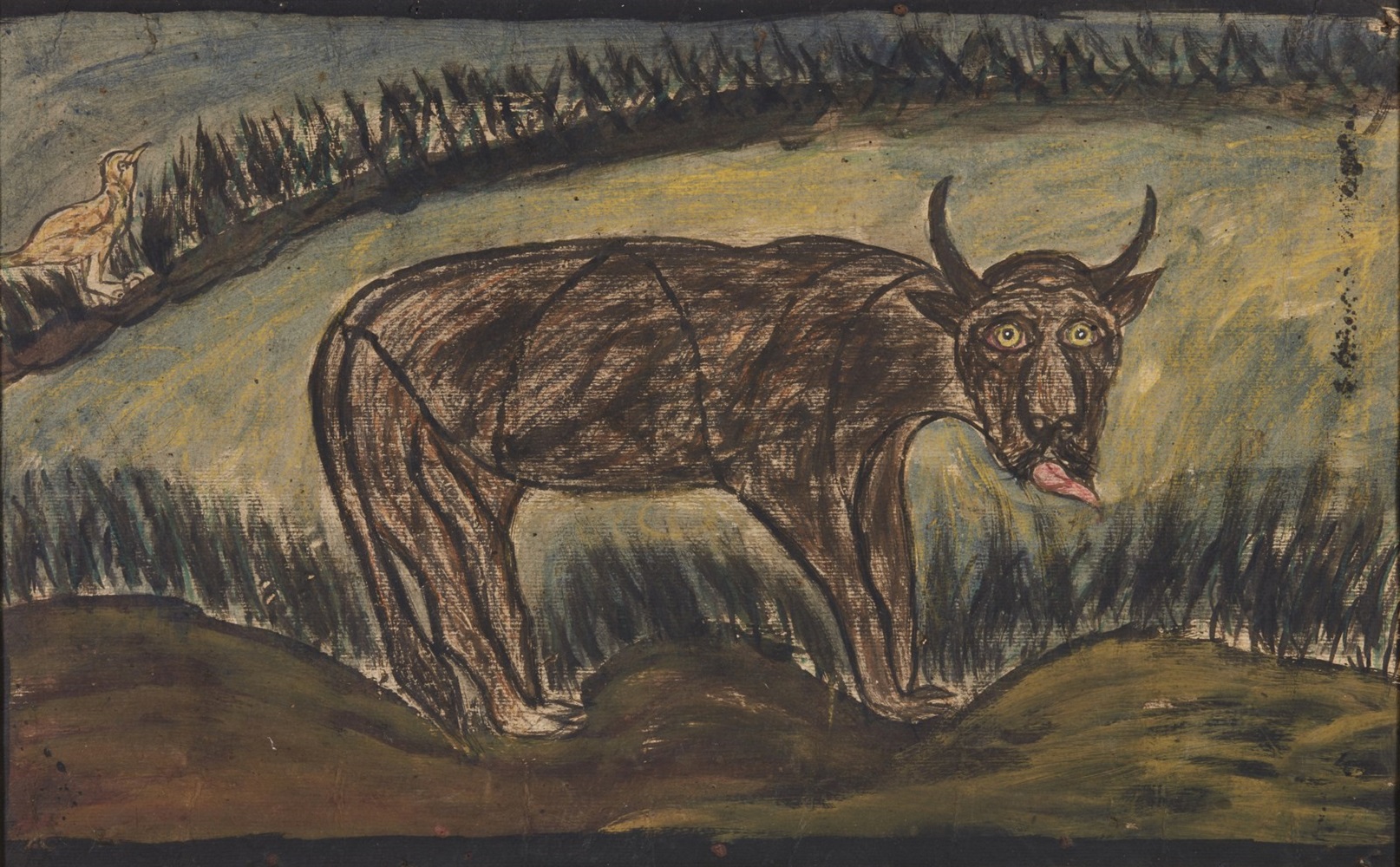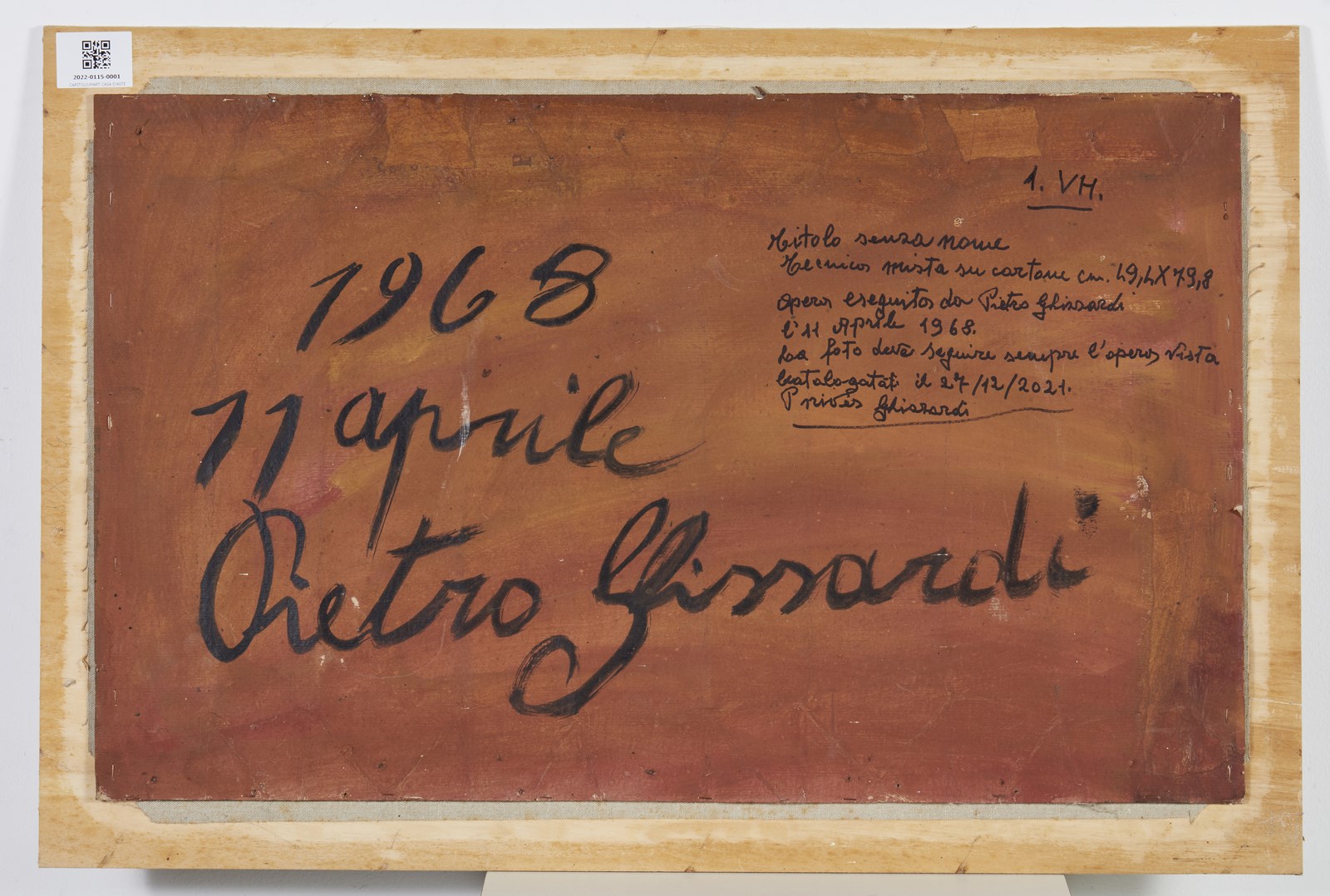 GHIZZARDI PIETRO (1906 - 1986) Senza titolo. 1968. Tecnica mista su cartone. Cm 79,80 x 49,40. Firma e anno in basso al centro. Al retro firma e anno. Opera archiviata presso l'Archivio Pietro Ghizzardi, Boretto, come da documentazione fotografica allegata all'opera riportante il relativo numero d'inventario. Difetti.