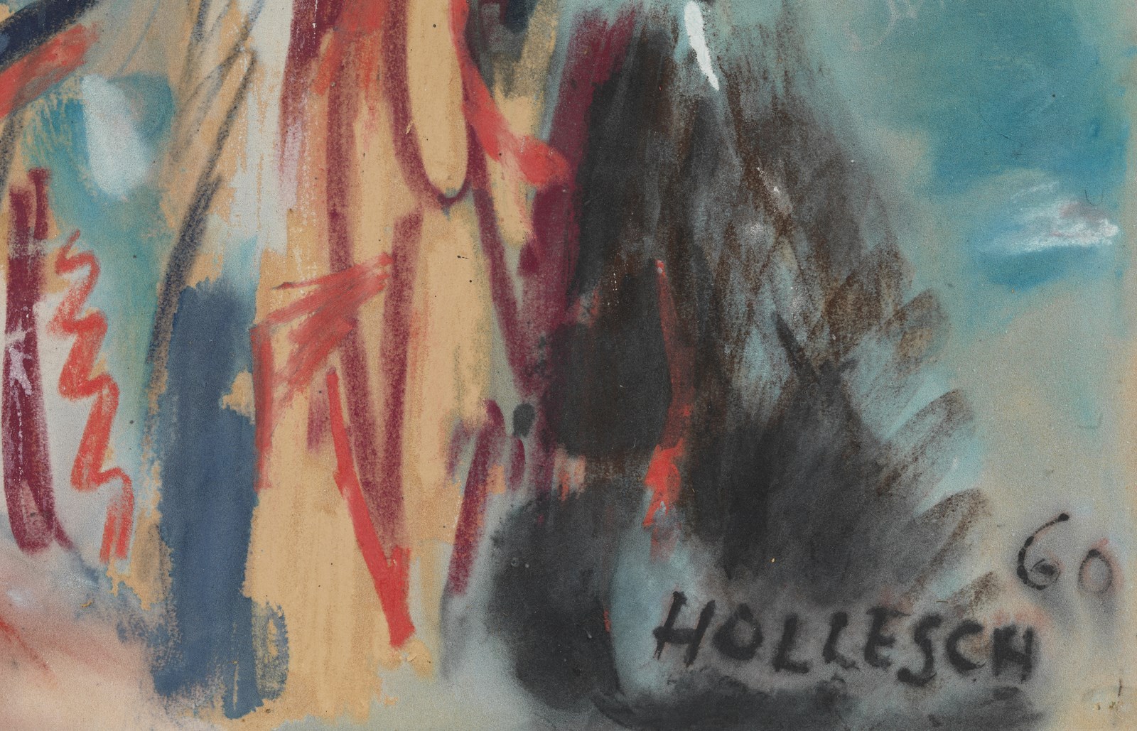 HOLLESCH CARLO (1926 - 1977) Senza titolo. 1960. Tecnica mista su carta. Cm 62,50 x 79,00. Firma e anno in basso a destra. . Cornice presente
