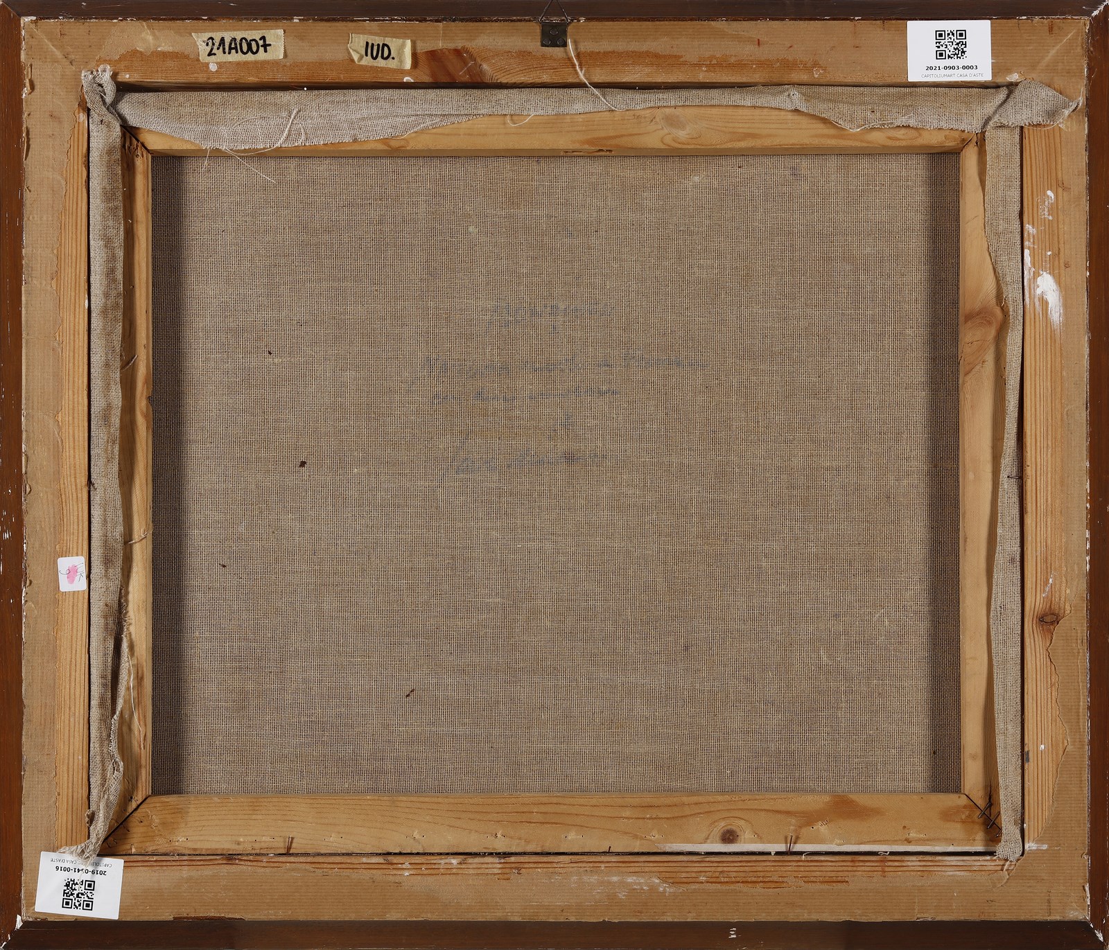 MONACHESI SANTE (1910 - 1991) Senza titolo. Olio su tela . Cm 59,50 x 49,50. Firma in basso al centro. Al retro firma, titolo e anno. Opera rintelata. Autentica su fotografia di Giacomo Tommolini riportante il relativo numero d'inventario.