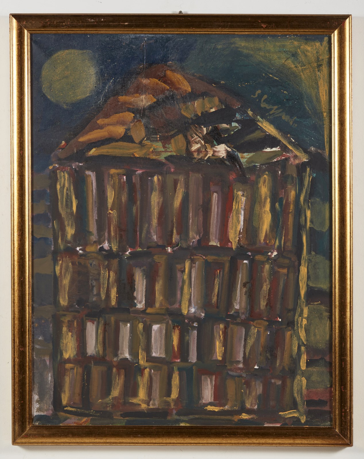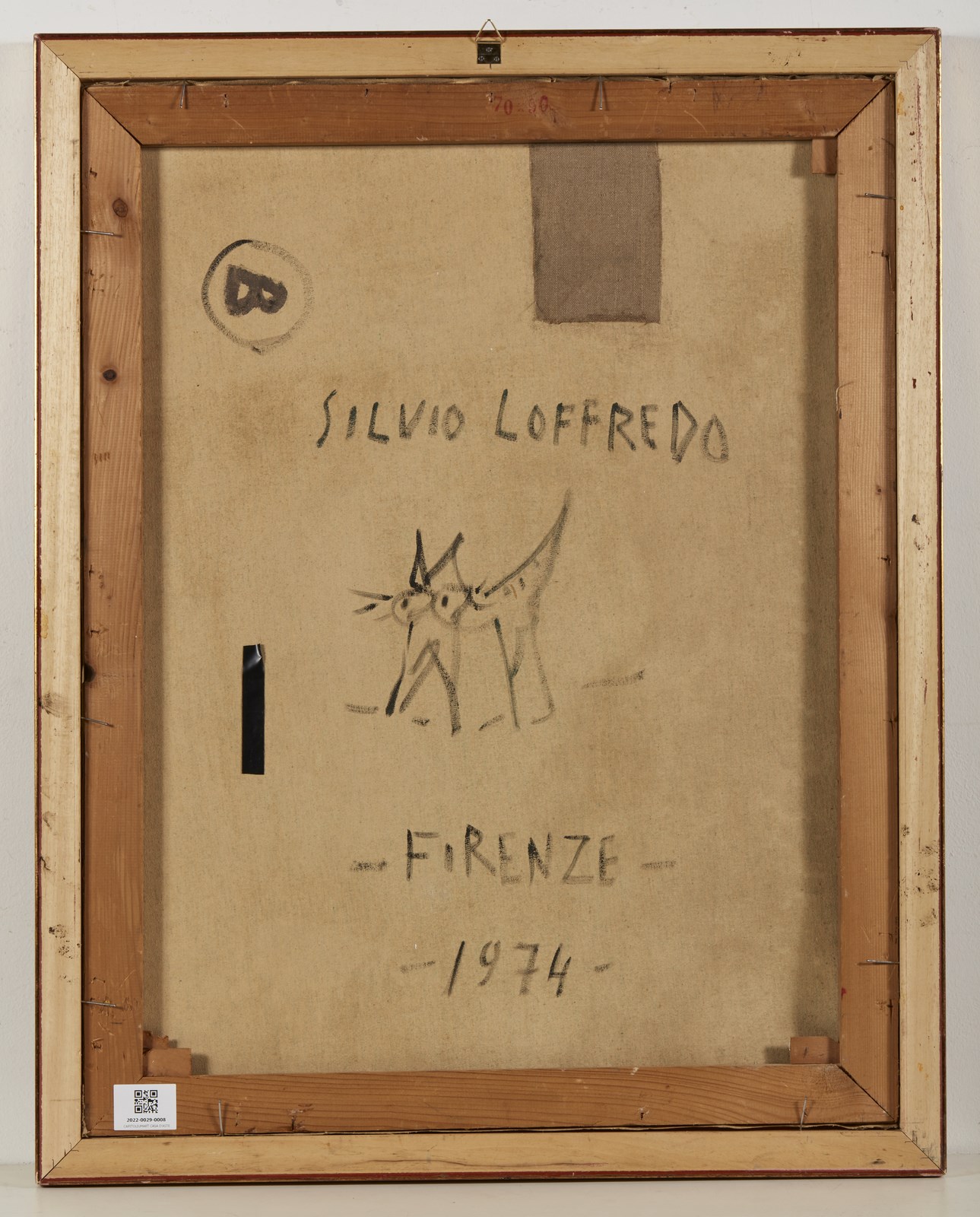 LOFFREDO SILVIO (n. 1921) Senza titolo. 1974. Olio su tavola. Cm 70,00 x 90,00. Firma e anno al retro. Autentica dell'artista su fotografia. Difetti. Cornice presente