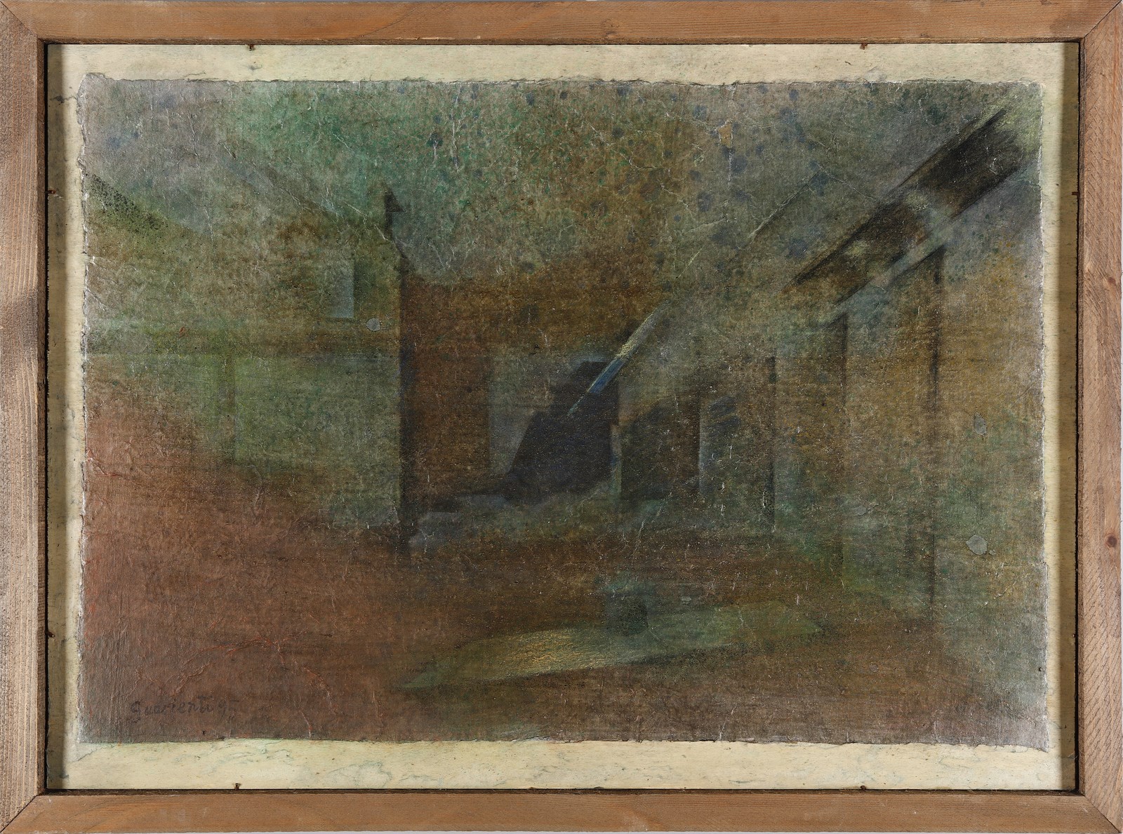 GUARIENTI CARLO (n. 1923) Senza titolo. 1995. Tecnica mista su tavola. Cm 62,00 x 45,00. Firma e anno in basso a sinistra. Cornice presente