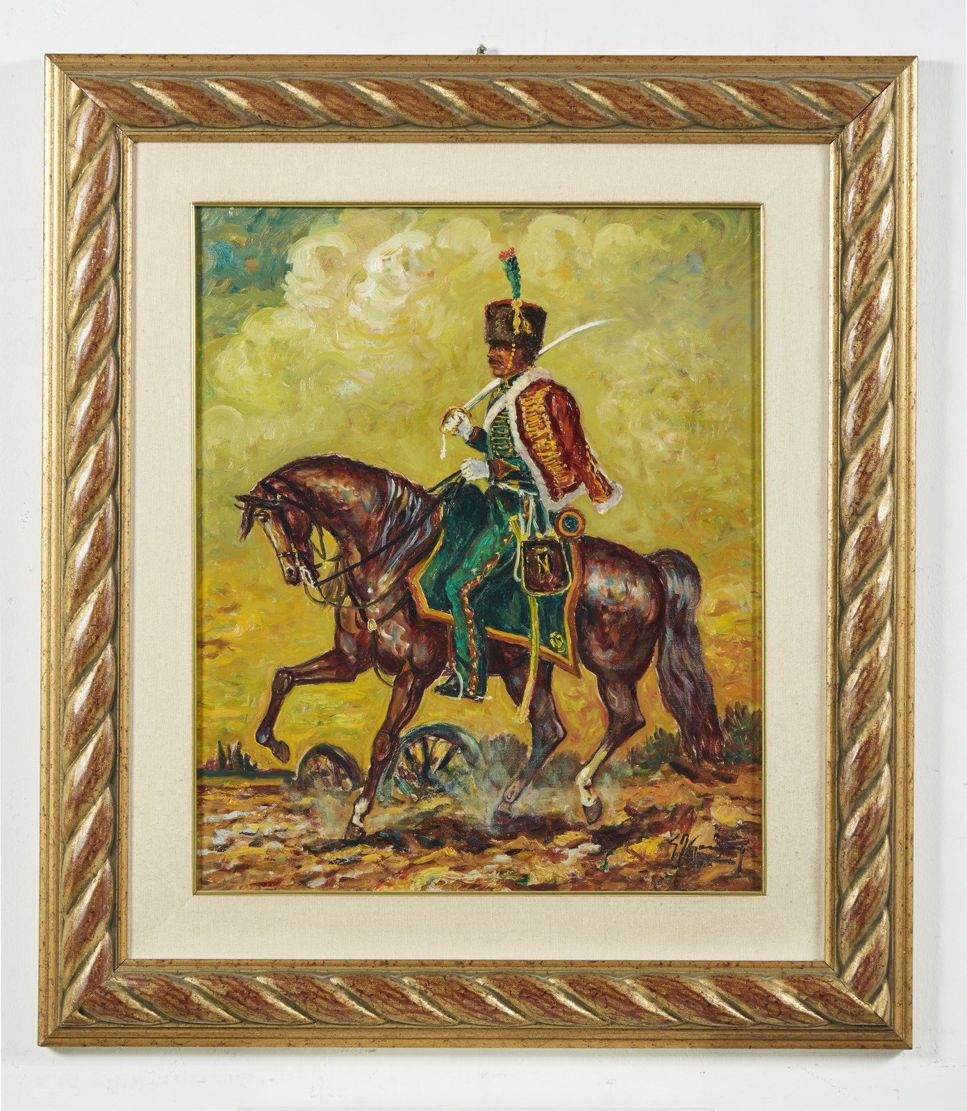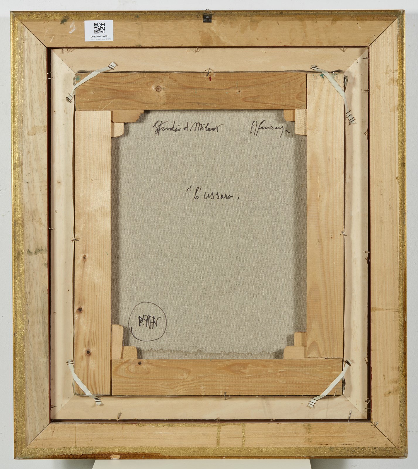 GONZAGA GIOVAN FRANCESCO (1921 - 2007) Il russo. Olio su tela . Cm 50,00 x 60,00. Firma in basso a destra. Al retro titolo e firma. Autentica dell'artista su fotografia. Cornice presente