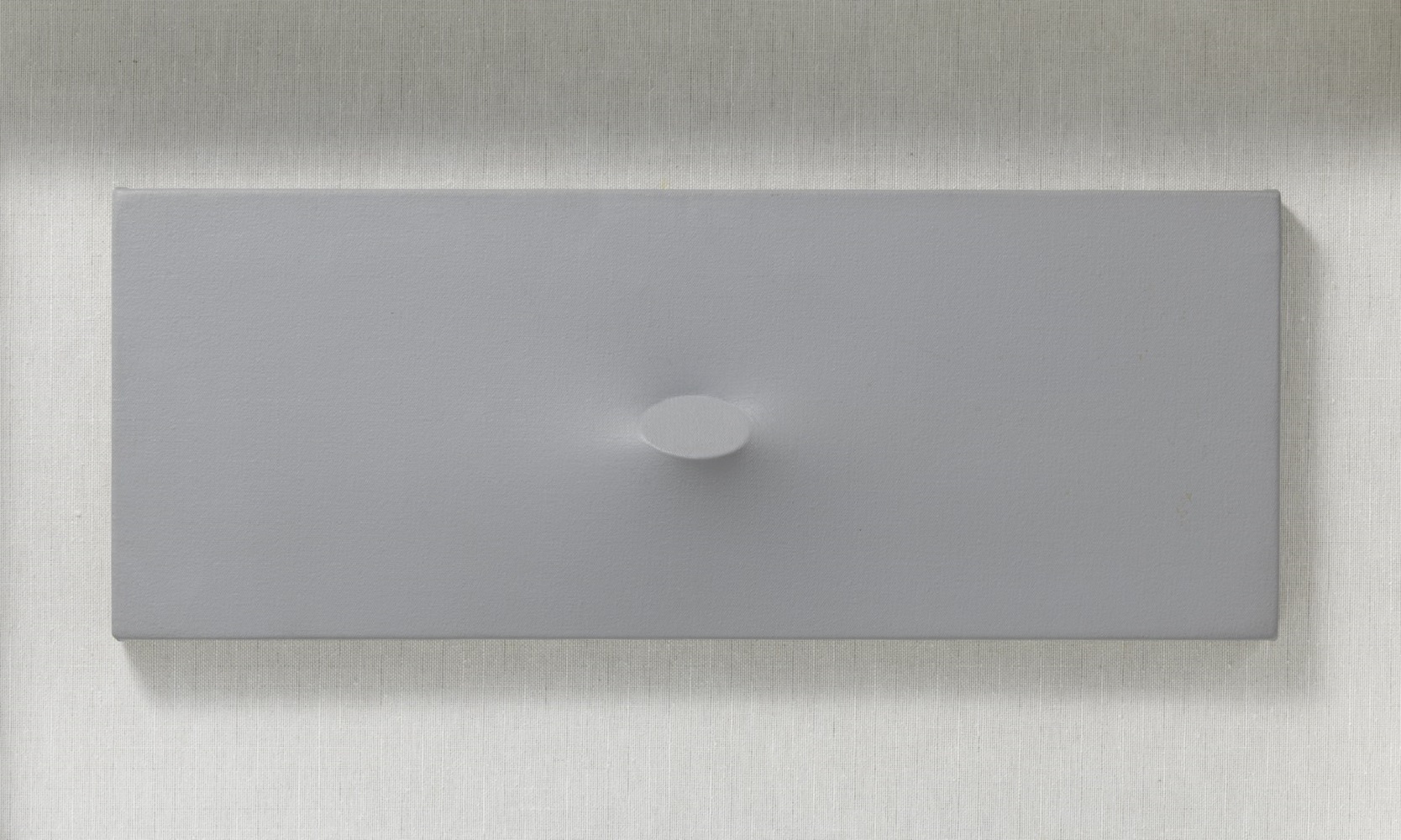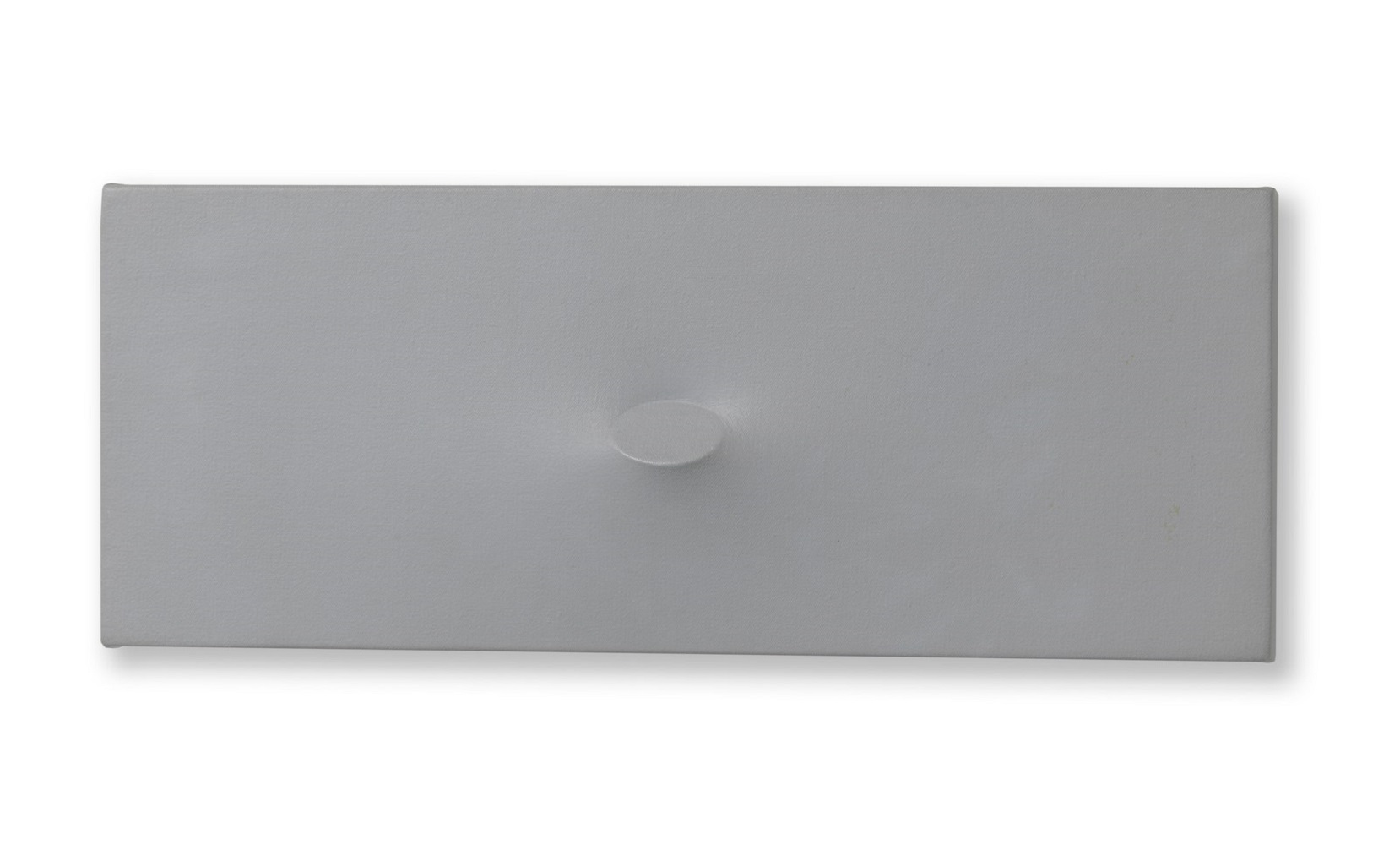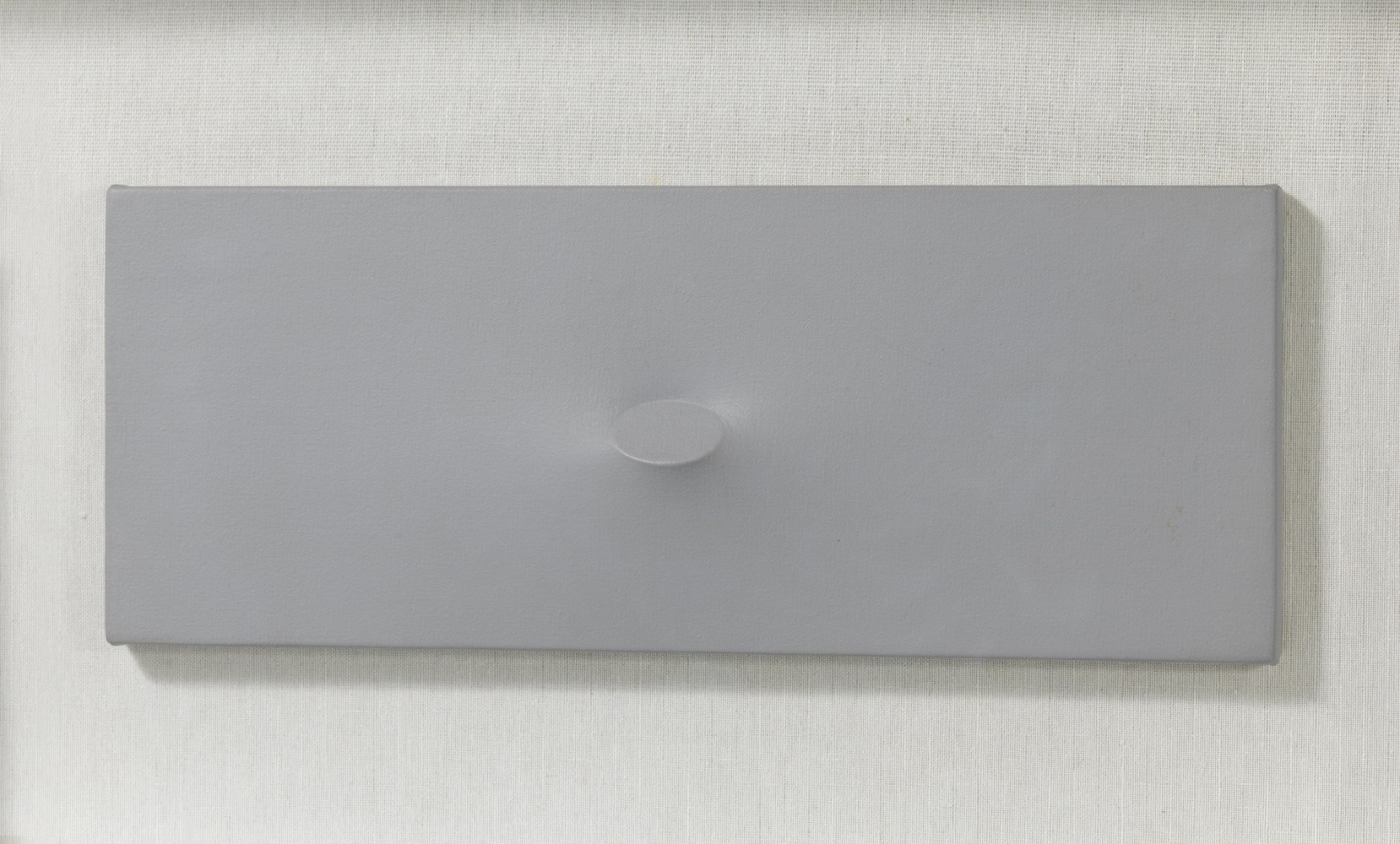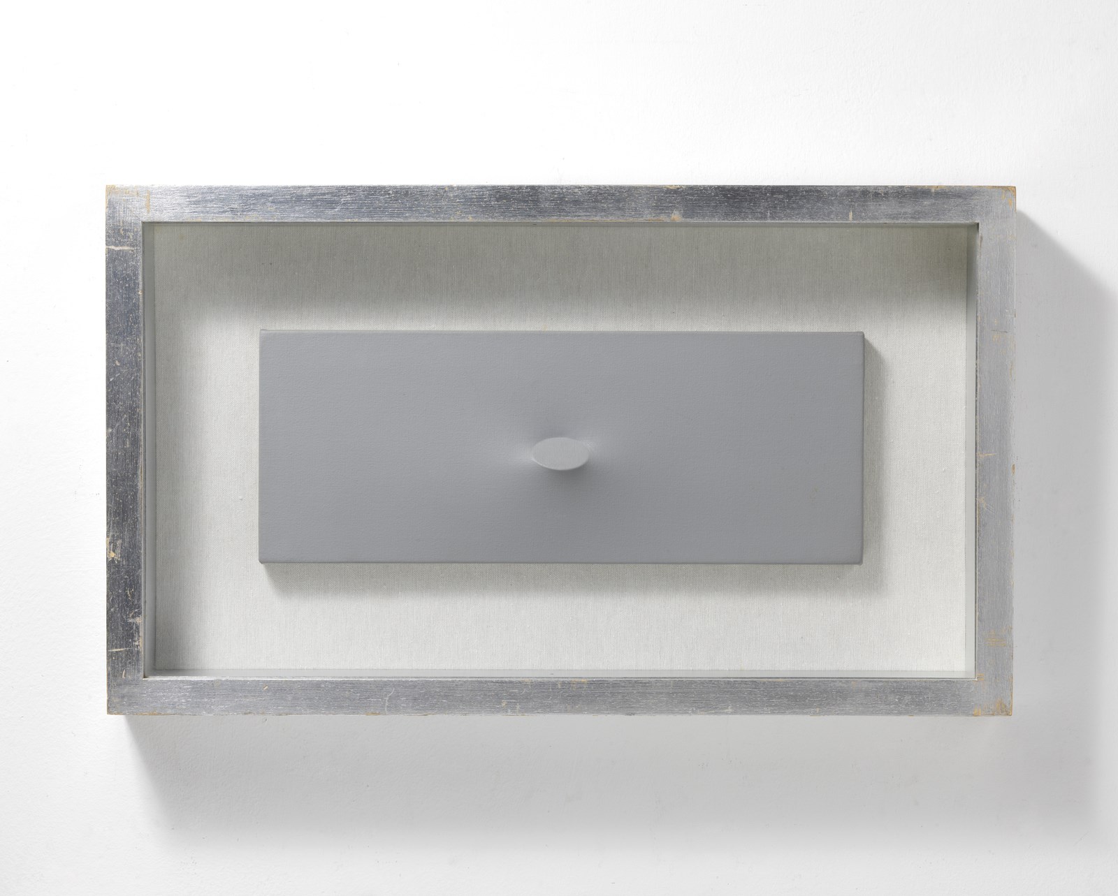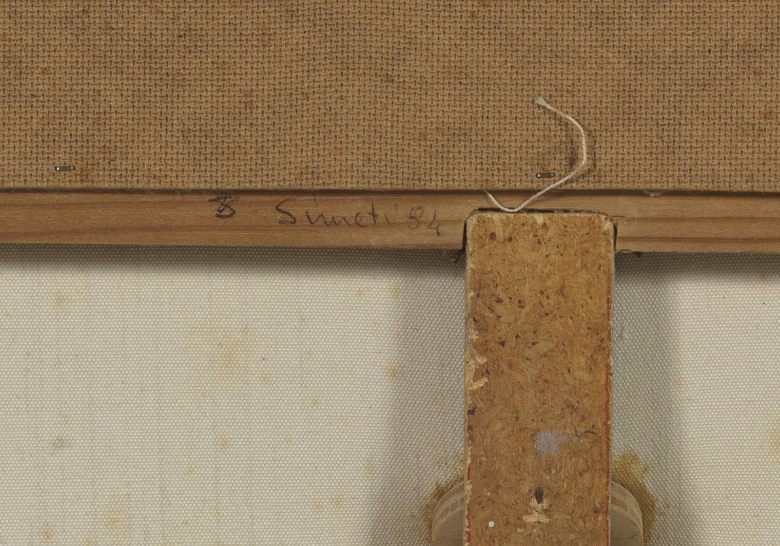 SIMETI TURI (n. 1929) Un ovale grigio. 1984. Acrilico su tela sagomata. Cm 47,00 x 18,00. Firma e anno al retro.Opera archiviata presso Artantide, Verona, come da documentazione fotografica allegata all'opera riportante il relativo numero d'inventario. Defects. Cornice presente
