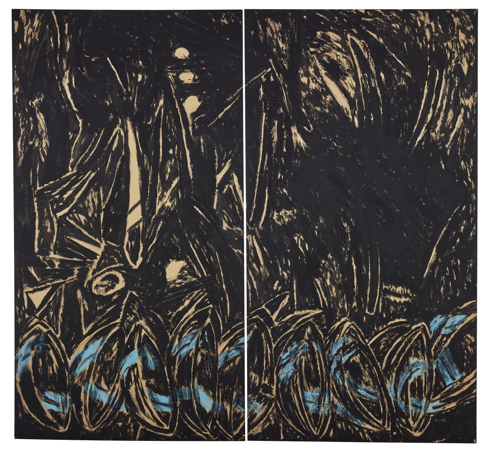 MERLINO SILVIO (n. 1952) Senza titolo. Tecnica mista su carta su tela. Cm 160,00 x 280,00. Lotto composto da n.2 opere.
