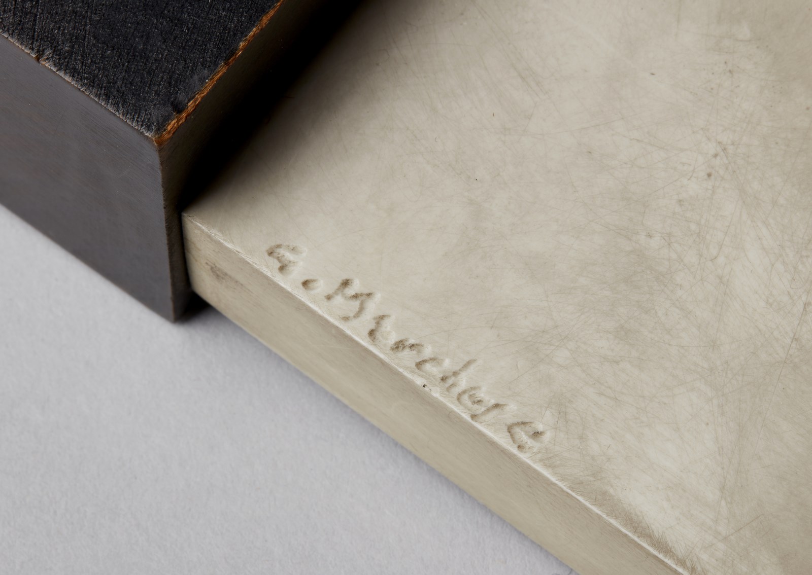 MARCHESE GIANCARLO (n. 1931) Senza titolo. Vetroresina e metallo. Cm 16,00 x 20,00 x 4,50. Firma incisa lungo il margine destro. Difetti. Provenienza: Collezione Lana, Milano.