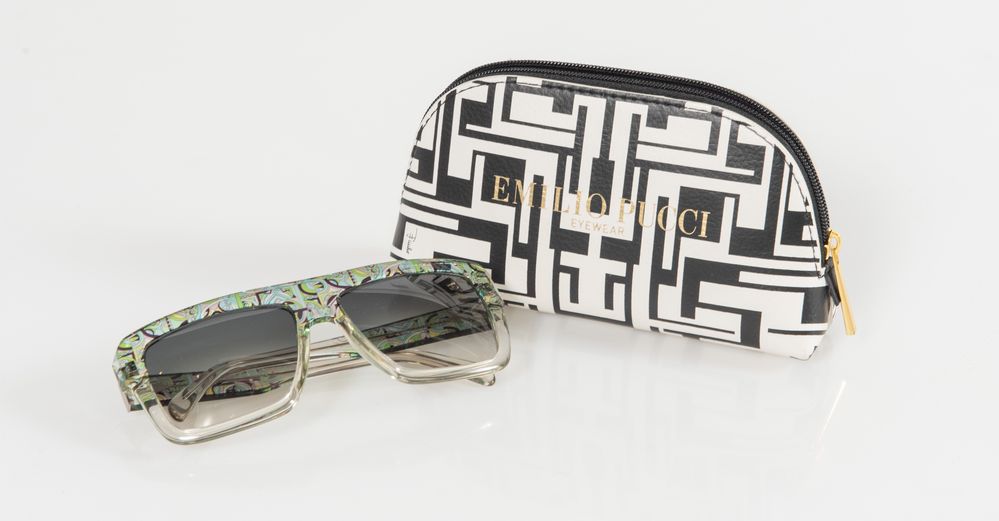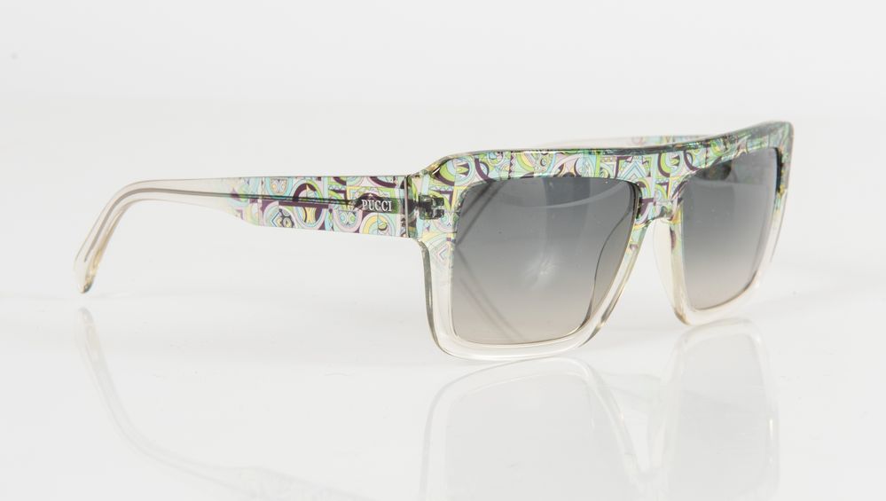 EMILIO PUCCI Occhiali da sole. Modello: EP 33 41P 57-16 140 2. Recano marchi Pucci, 2-2.5 Emilio Pucci Made in Italy. Corredati di custodia originale.