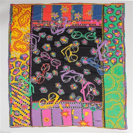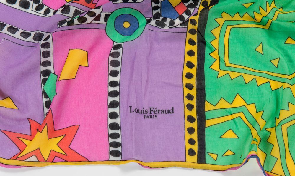 LOUIS FÉRAUD Grande foulard in cotone multicolore. Cm 150x135. Composizione:...