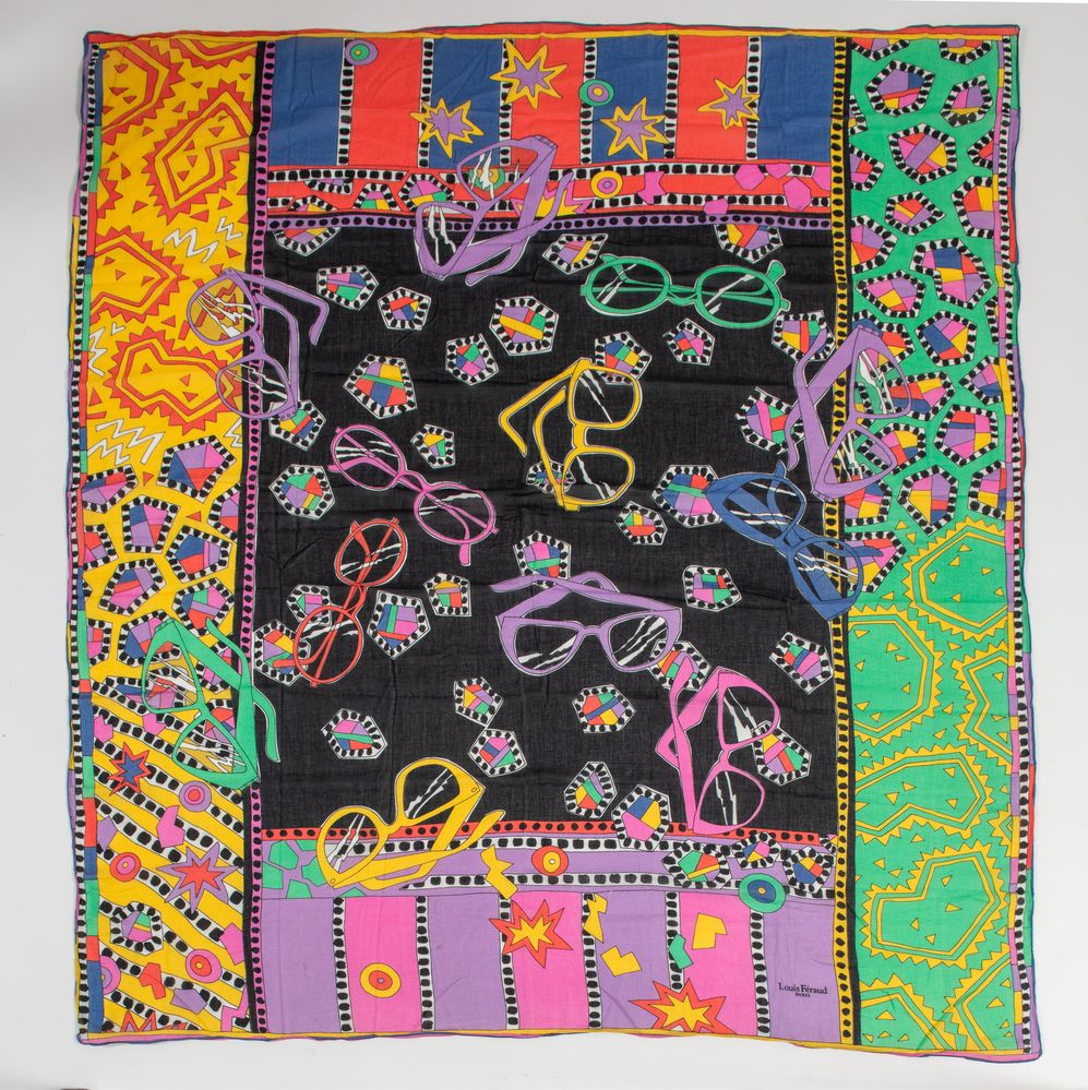 LOUIS FÉRAUD Grande foulard in cotone multicolore. Cm 150x135. Composizione: 100% cotone. Reca marchio Louis Féraud Paris.