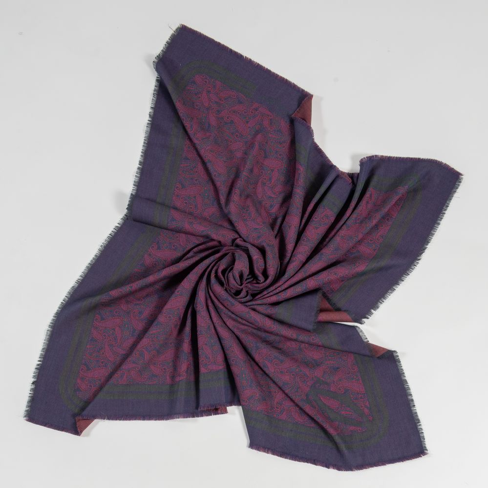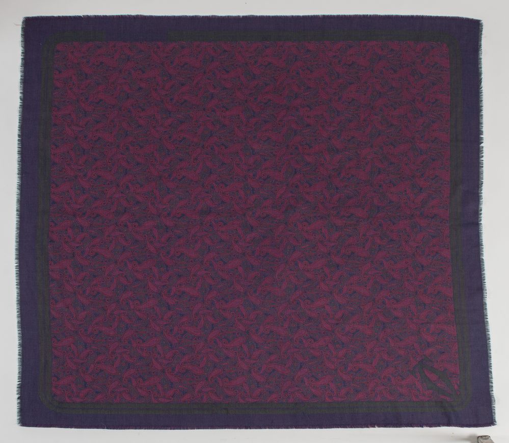 CARTIER Stola in lana con motivo cachemire sui toni del berdeaux. Cm 140x143....