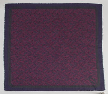 CARTIER Stola in lana con motivo cachemire sui toni del berdeaux. Cm 140x143. Reca marchio CC Cartier.