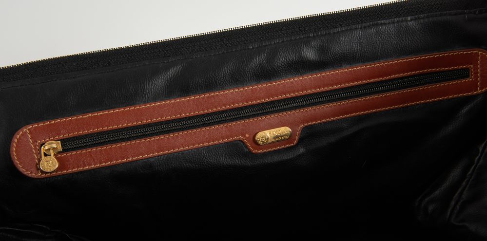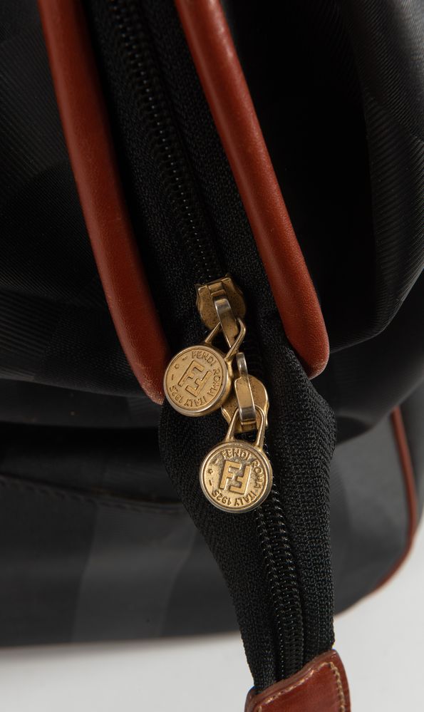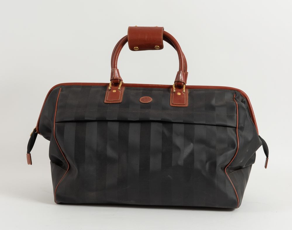 FENDI Pequin duffle bag. Borsone da viaggio, Anni '80. Cm 34x60x22. Corredato di manico/tracolla aggiuntiva originale di cm 104. Reca marchi Fendi s.a.s. Roma 1925. Made in Italy. (Lievi difetti)