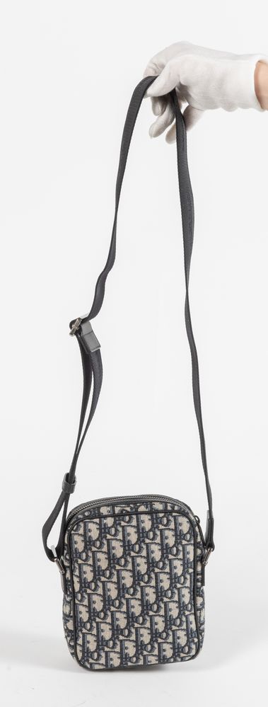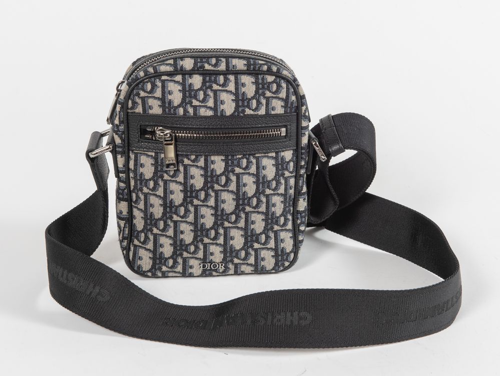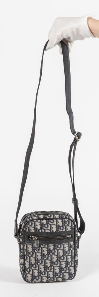 CHRISTIAN DIOR Marsupio a tracolla in tela nel classico motivo Jacquard Dior Oblique con rifiniture in pelle. Presenta una tasca chiusa da cerniera sul lato frontale. Cm 20x17,5x7. Tracolla in tessuto tecnico di lunghezza massima: cm 135. Interno in tela nera. Reca marchi Dior, Christian Dior, Dior Made in Italy e codice riferimento prodotto. Corredato di dustbag originale.