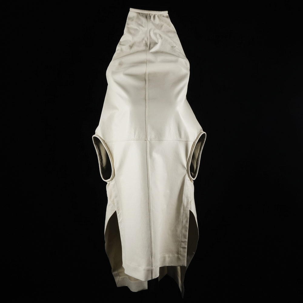 Rick Owens casacca a mantella in pelle bianca con spacchi sui fianchi, tg. 42