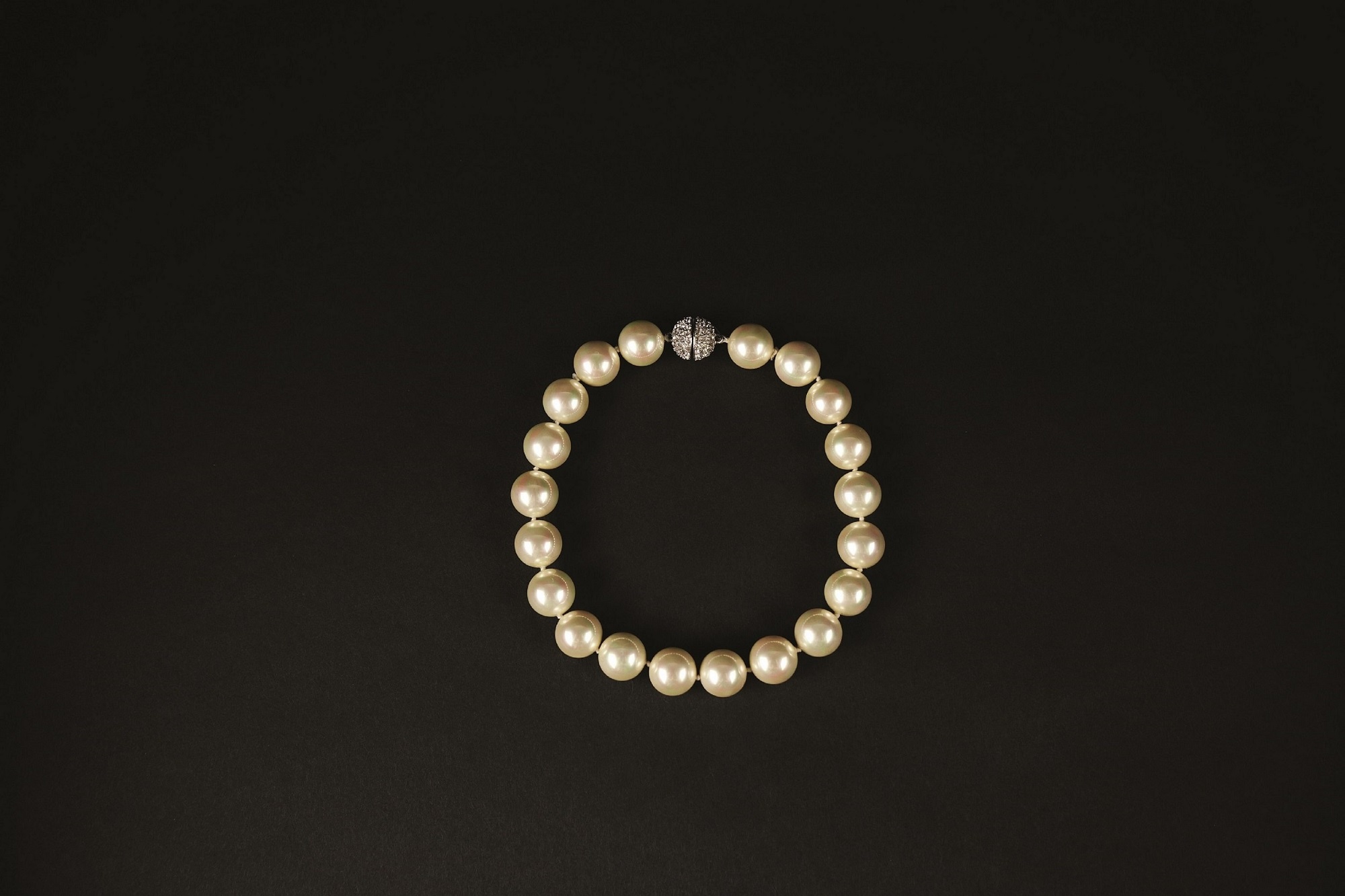 Collier di finte perle con chiusura di strass, l. cm. 37 (chiusura da rimontare)