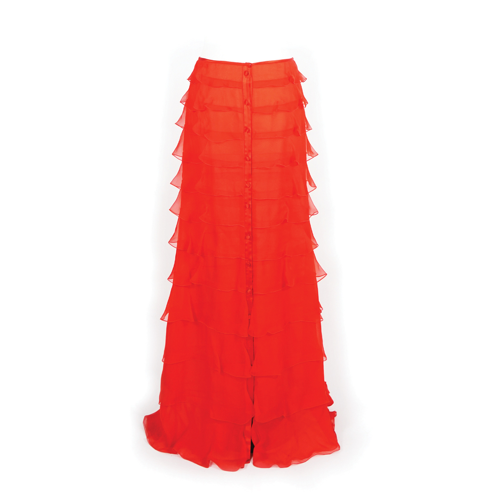 Lot 63 | Valentino maxi gonna a balze in voile di seta rossa, tg. 6. Collezione...