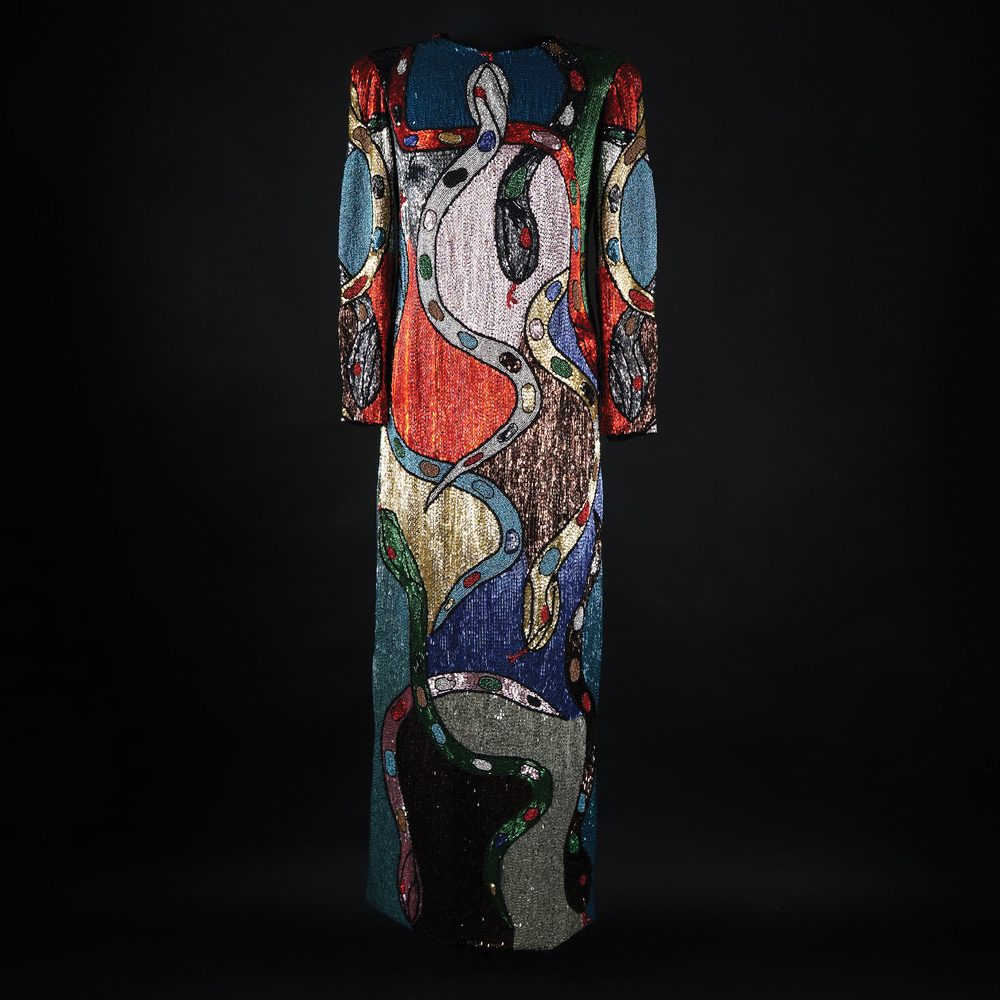 Hattie abito lungo "snakes" ricamato in perline e cannette policrome