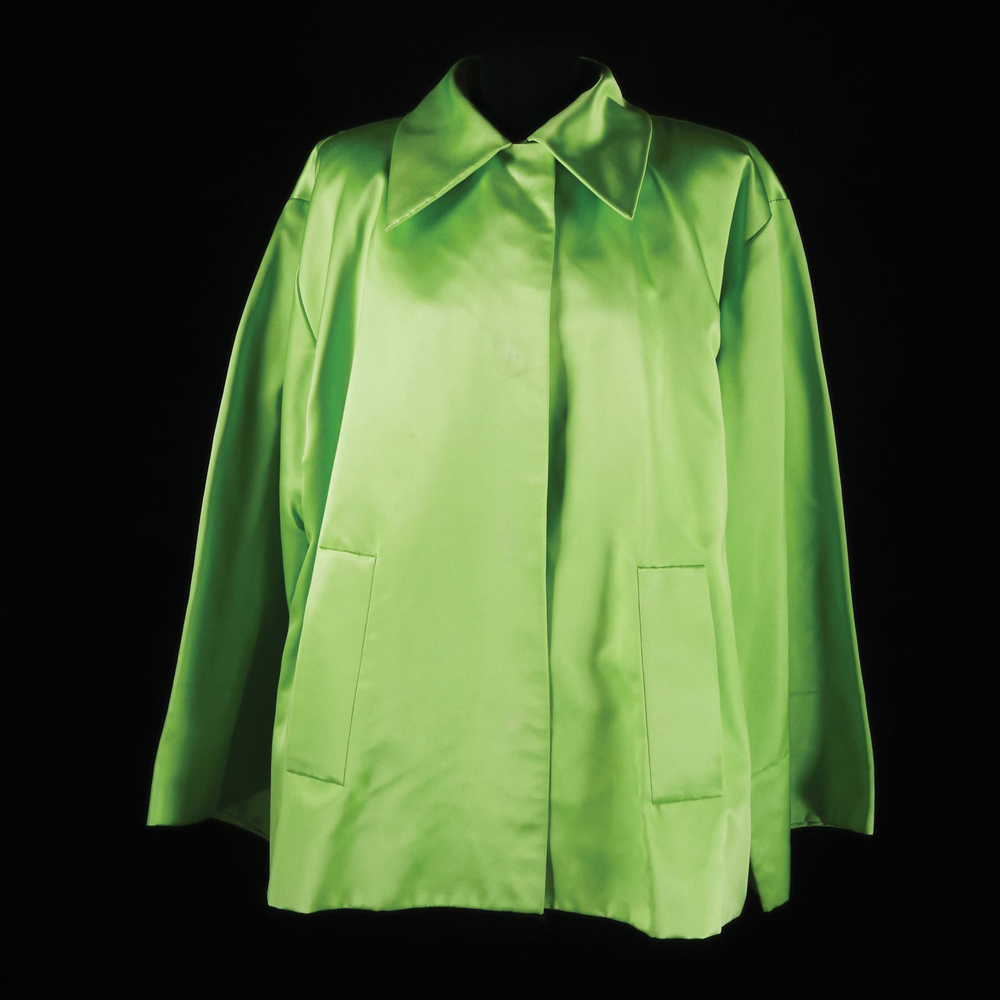 Nina Ricci caban di raso verde mela fluo con ampie maniche (bottoni mancanti)