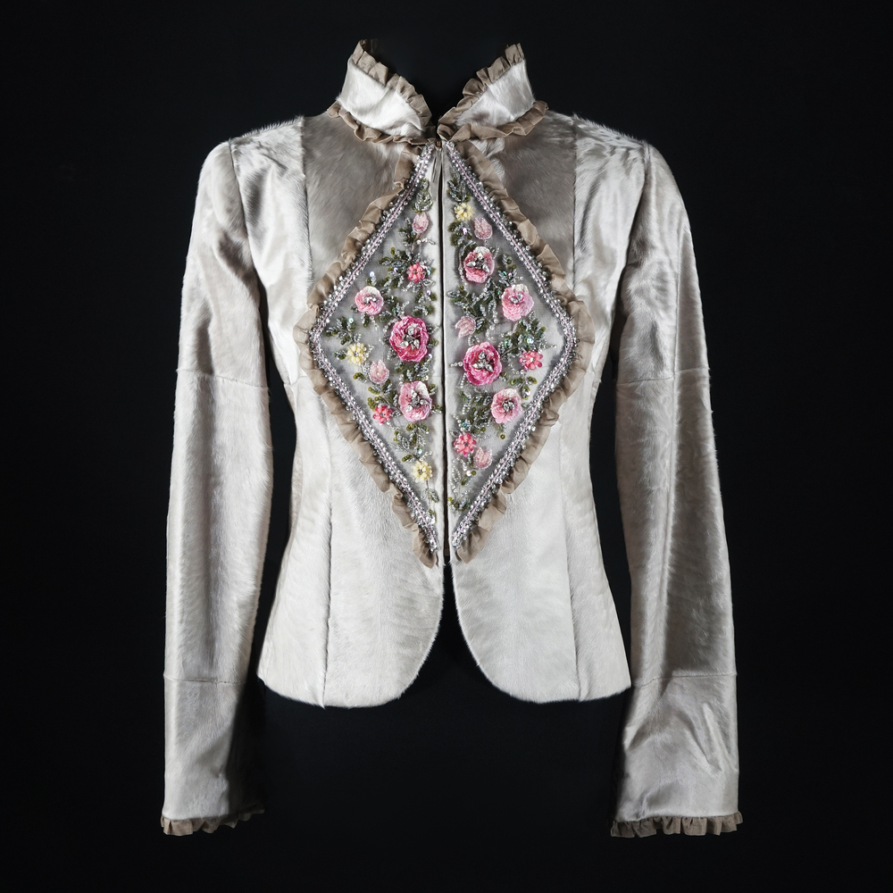 Lot 220 | Valentino giacca in pelle beige abbellita sul davanti da inserti in tulle...
