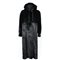 Cappotto di visone rasato nero con cappuccio; tasche a fessura; manica...