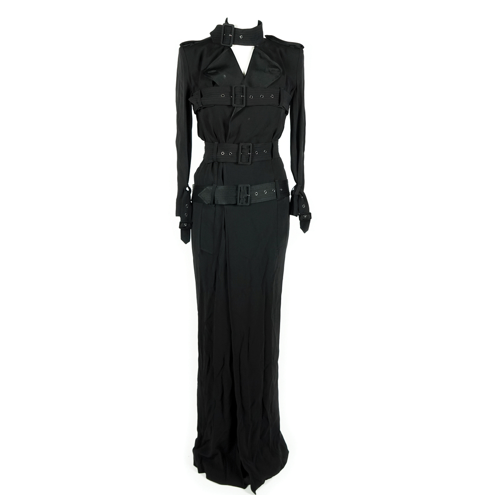 Lot 279 | Jean Paul Gaultier maxi abito chemisier in misto rayon nero con cinture che...