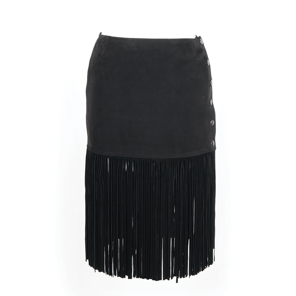 Lot 292 | Yves Saint Laurent gonna di camoscio nero con frange; apertura sul fianco con...