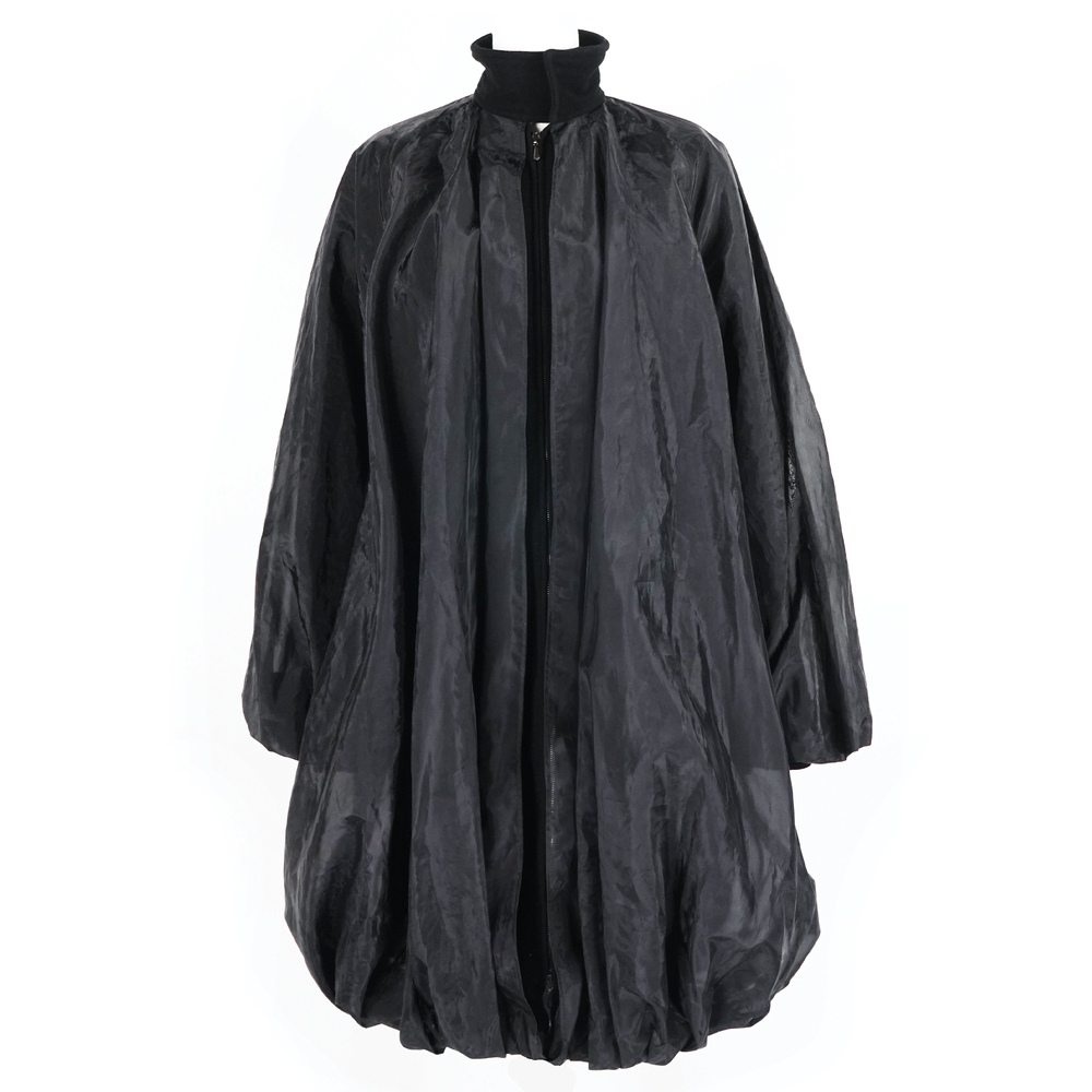 Jean Paul Gaultier cappotto a palloncino in misto lana nera rivestito in poliestere nero; chiusura a zip e collo alla coreana, tg. 42
