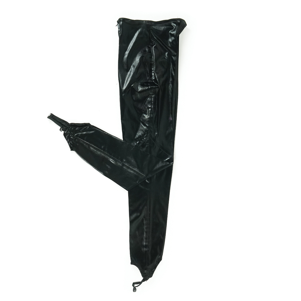 Thierry Mugler pantalone a sigaretta con staffa in tessuto elasticizzato nero lucido, nello stile della moda da sci degli ani '40