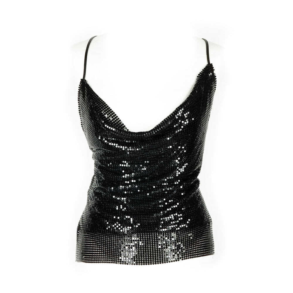 Versace (attr.) top in maglia metallica nera con schiena nuda legata da...