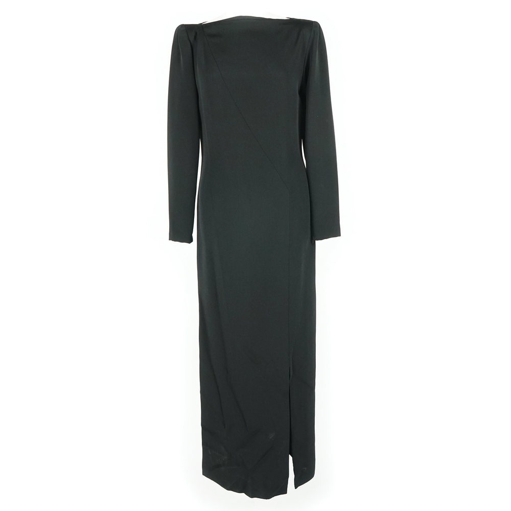 Nina Ricci abito lungo in seta nera con scollo a barca