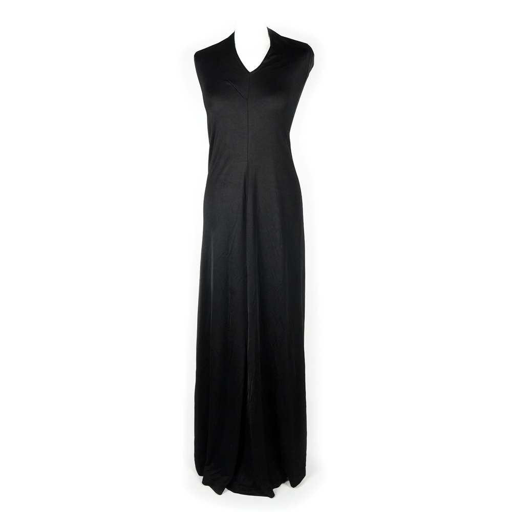 Paco Rabanne abito lungo con scollo all'americana in viscosa nera, tg. L