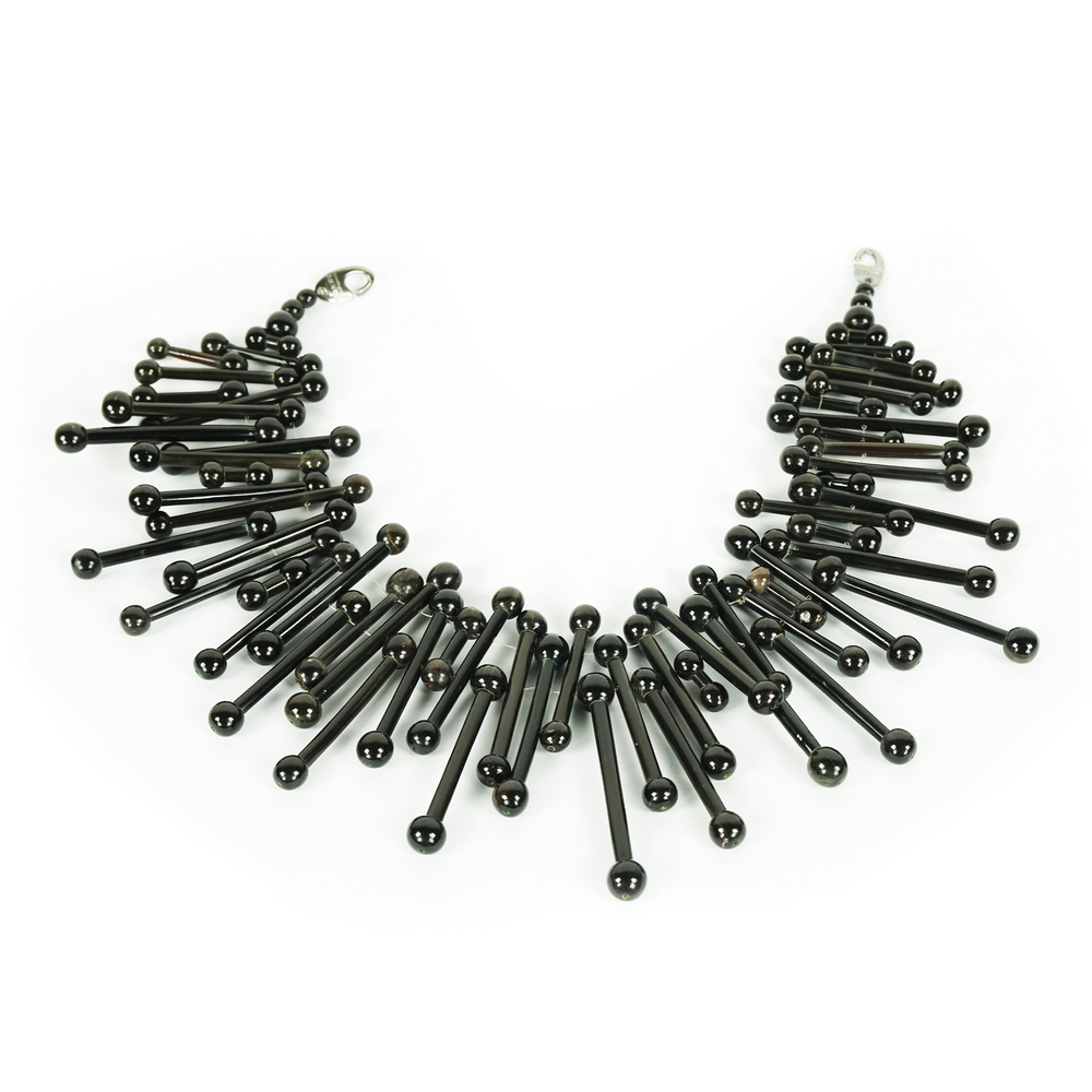 Gerda Lynggaard Monies, collana in bachelite composta da bacchette con finali sferici, 1998, l. cm. 45