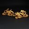 Coppia di sculture in bronzo dorato ciascuna raffigurante un drago che trattiene una sfera.