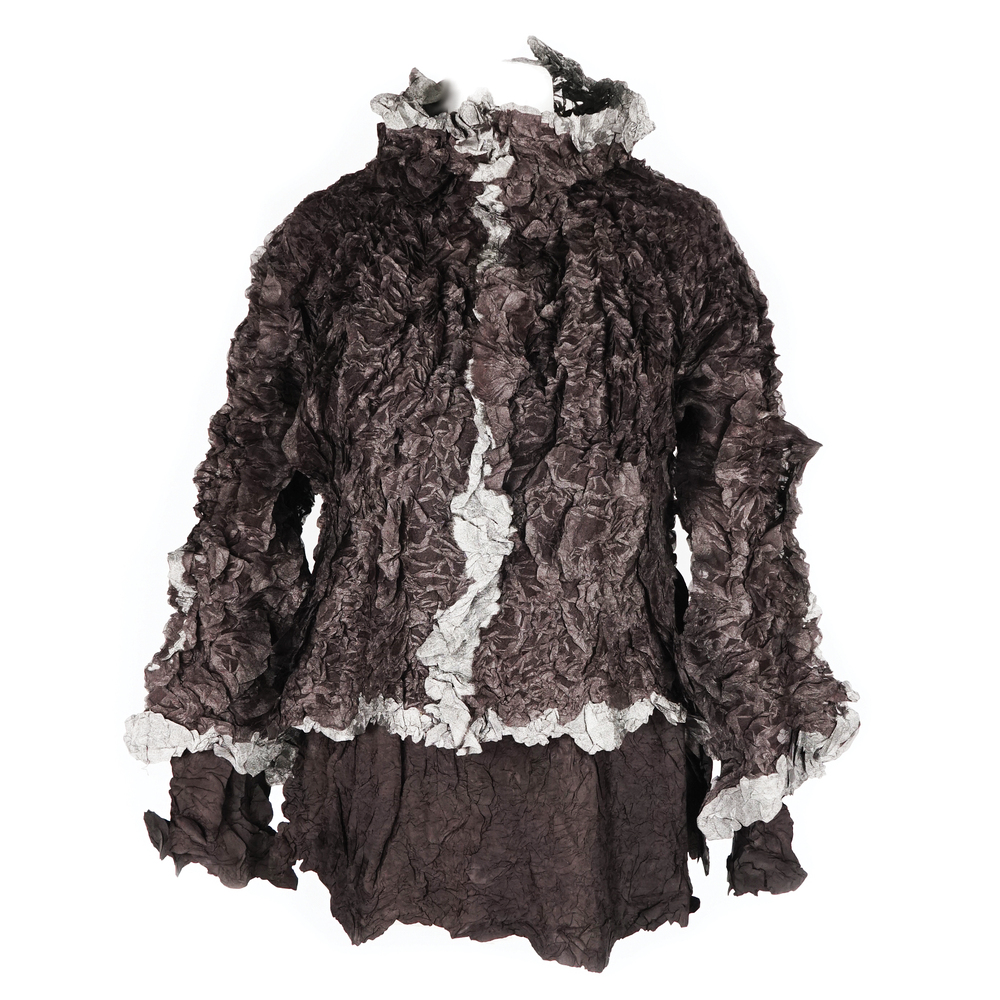 Lot 387 | Issey Miyake camicia in poliestere goffrato a due strati in grigio/argento e...