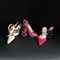 Christian Dior tre paia di décolleté delle quali una in pelle pitonata violacea, tg. 37, uno di pelle color avorio, tg. 37,5 e uno in broccato fucsia con stringhe color argento, tg. 38
