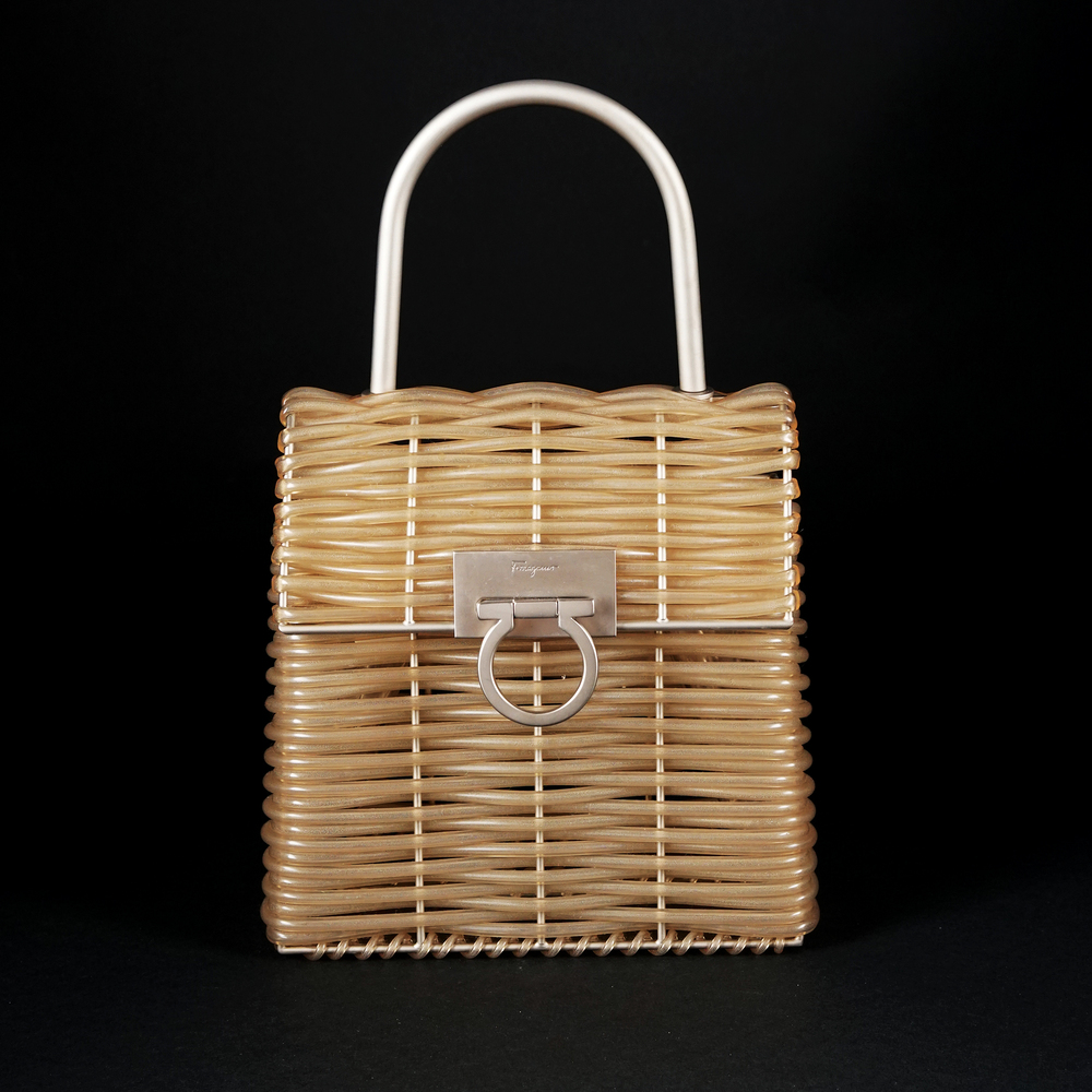 Salvatore Ferragamo borsetta rigida in gomma simulante il vimini; completa di dust bag