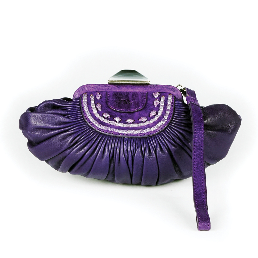 Christian Dior clutch in pelle viola con alcuni particolari argentati; n....