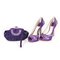 Christian Dior clutch in pelle viola con alcuni particolari argentati; n. 03-LU-1007 e un paio di décolleté in pelle viola, tg. 37 en pendant
