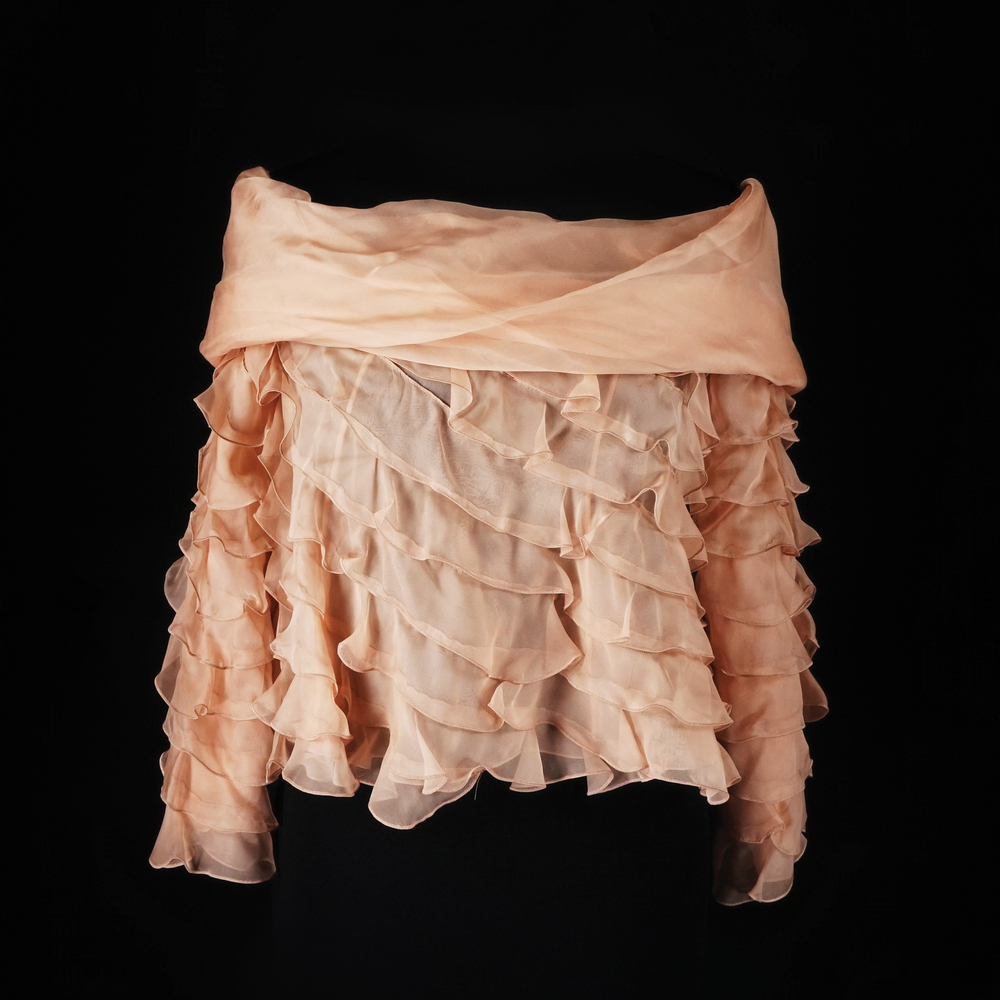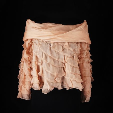 Valentino blusa in voile di seta color pesca a balze oblique, tg. 6