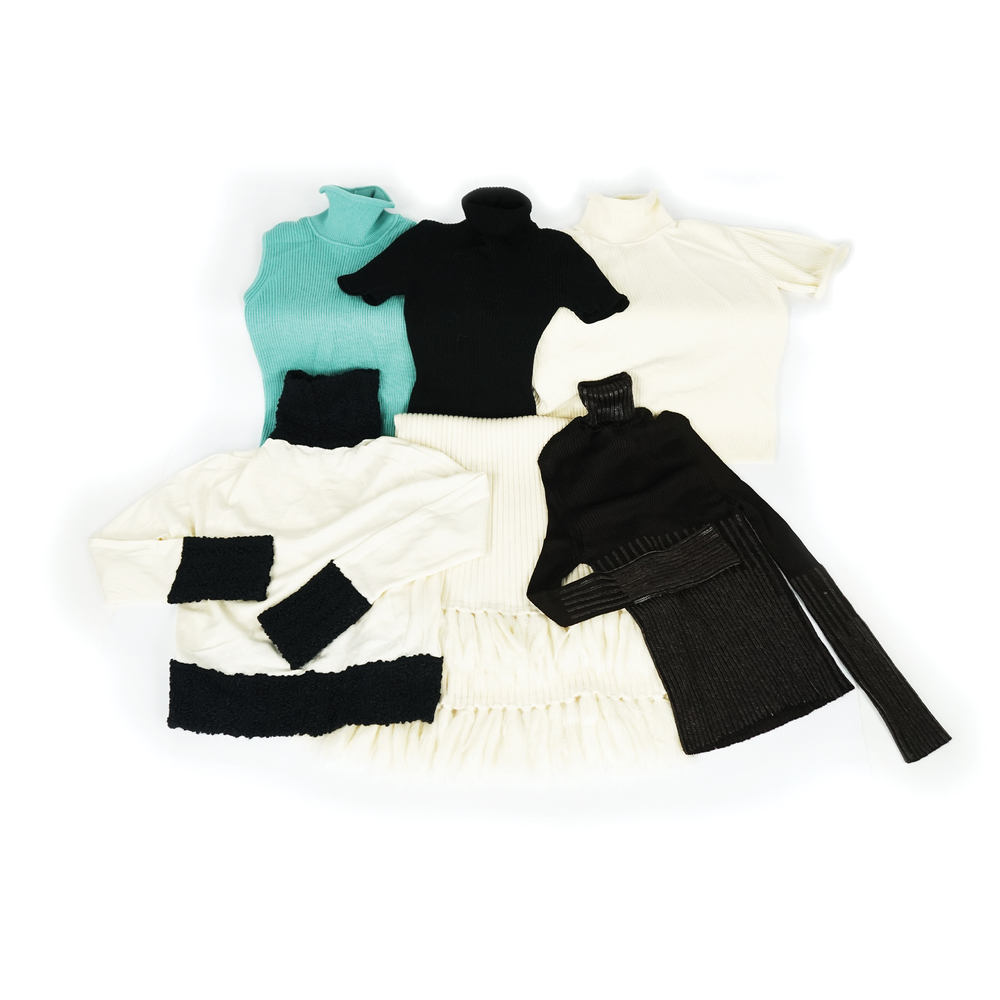 Christian Dior cinque maglie di materiali e colori diversi UNITE a un collo, tg. dalla 36 alla 40
