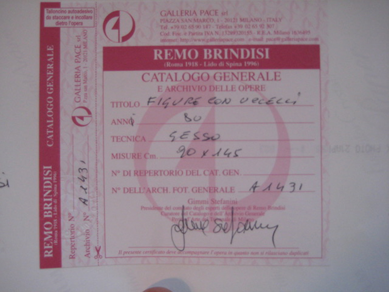 Certificazione: Pubblicato su catalogo generale Remo Brindisi Galleria Pace - Milano