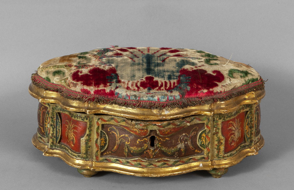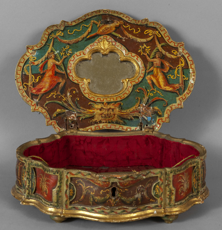 Portaspilli in legno decorato in policromia interno dipinto Venezia sec.XVIII