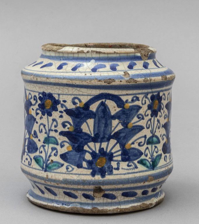 Albarello in maiolica bianca e blu con decorazione floreale Venezia sec.XVI