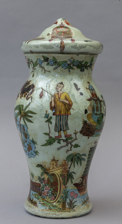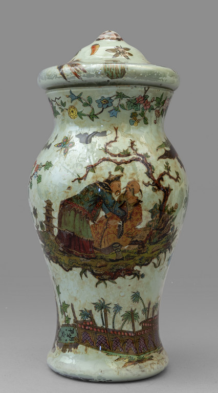 Vaso in vetro con coperchio decorato con applicazioni in arte povera Piemonte sec.XVIII
