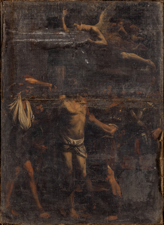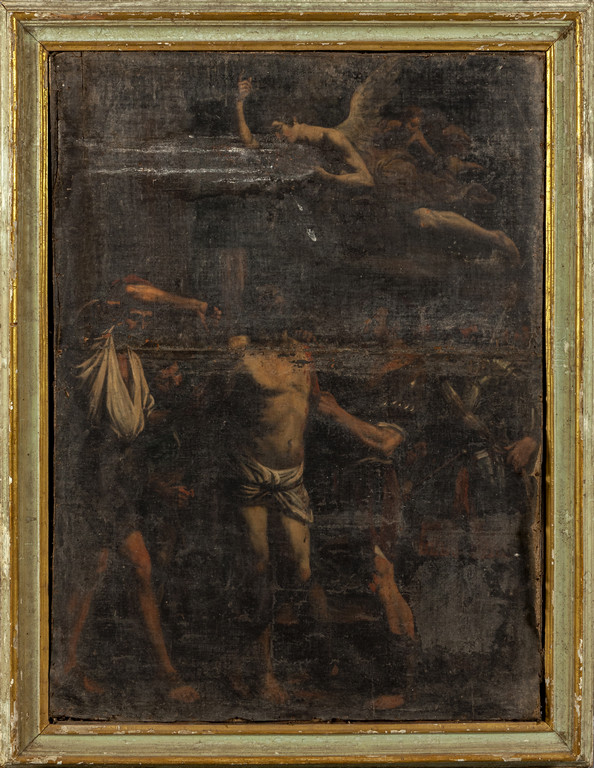 Scuola caravaggesca inizi sec.XVII 'Il martirio di San Bartolomeo' olio