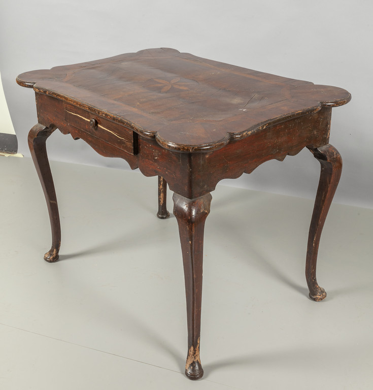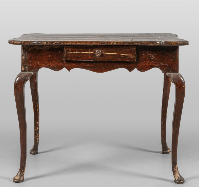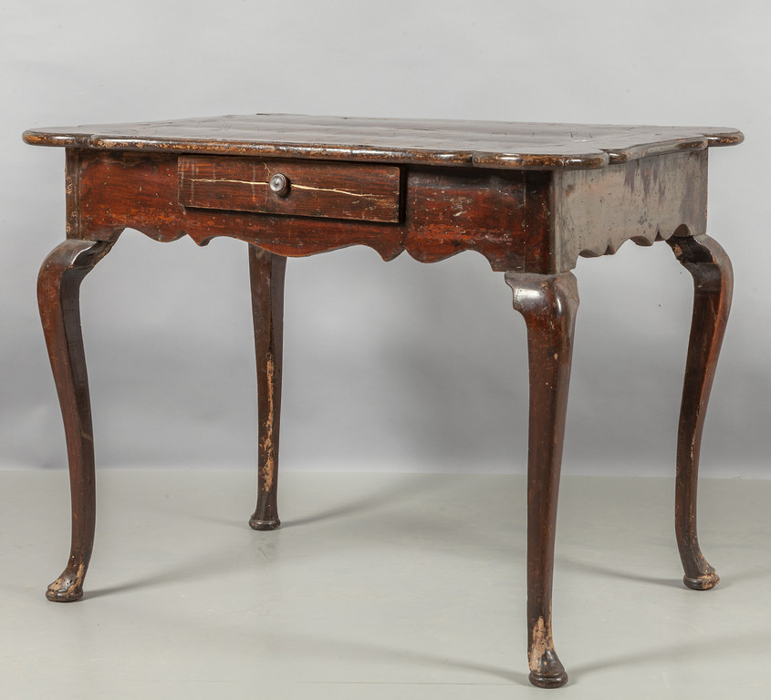 Tavolo da centro in legno piano sagomato e lastronato in palissandro gambe mosse un cassetto nella fascia Veneto sec.XVIII